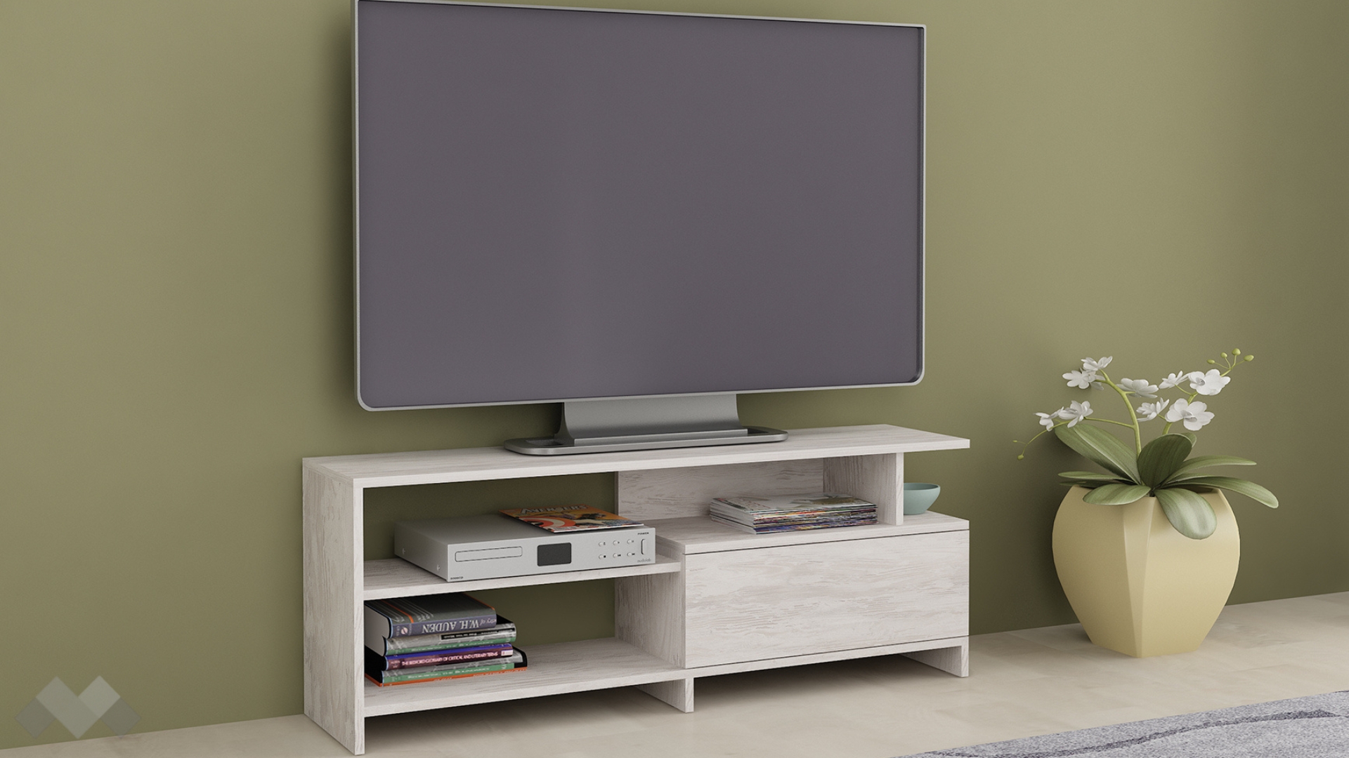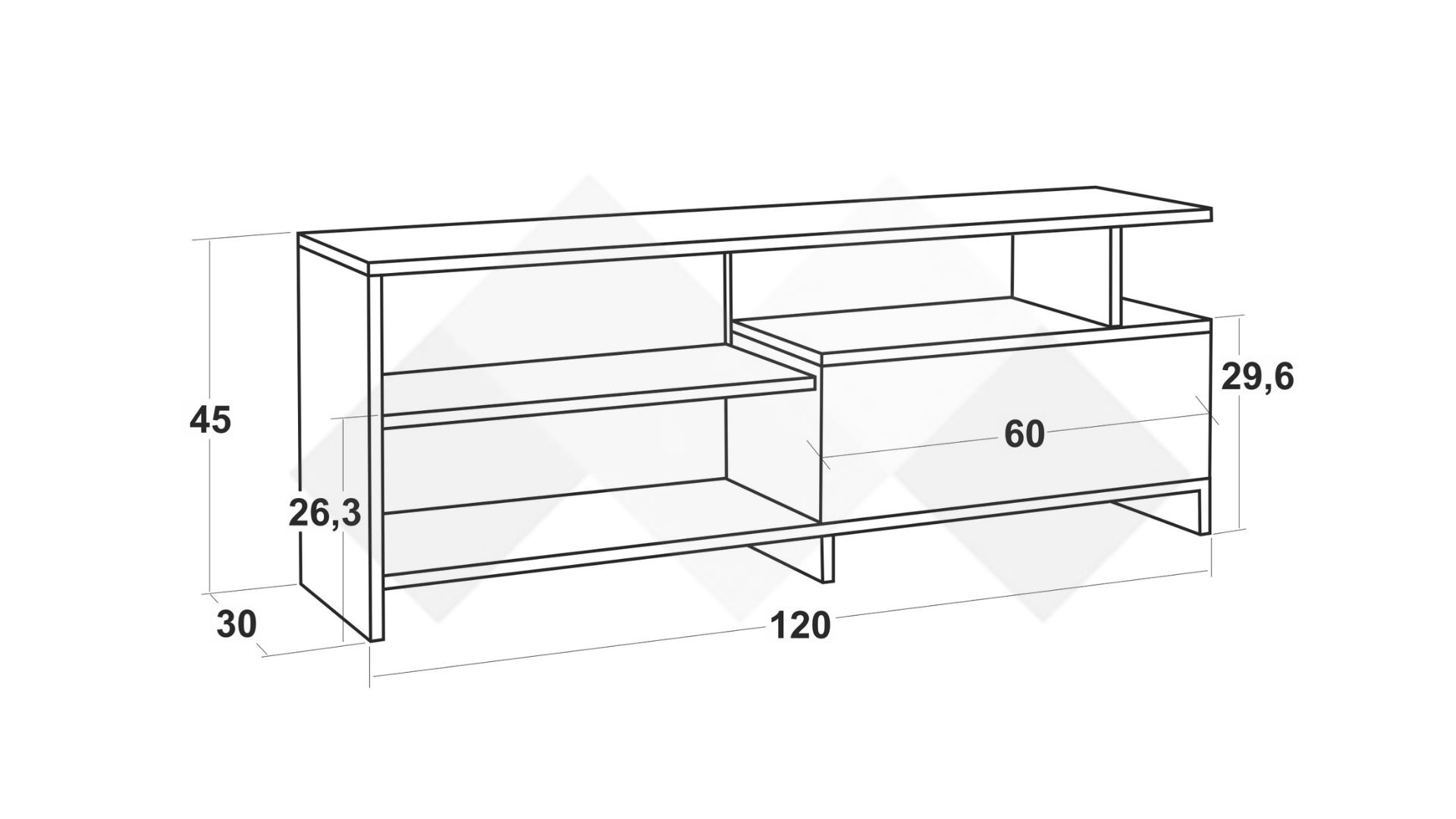 На твое разположение са два рафта, затворен шкаф и удобен плот, на който можеш да поставиш своя телевизор. Рафтовете ти предоставят достатъчно пространство, където да поставиш цялата си съпътстваща техника като ТВ приемници, конзоли и други. В затворения шкаф можеш да организираш вещите, които искаш да останат скрити, или техника, която не използваш толкова често, но в същото време ще ти е винаги под ръка.