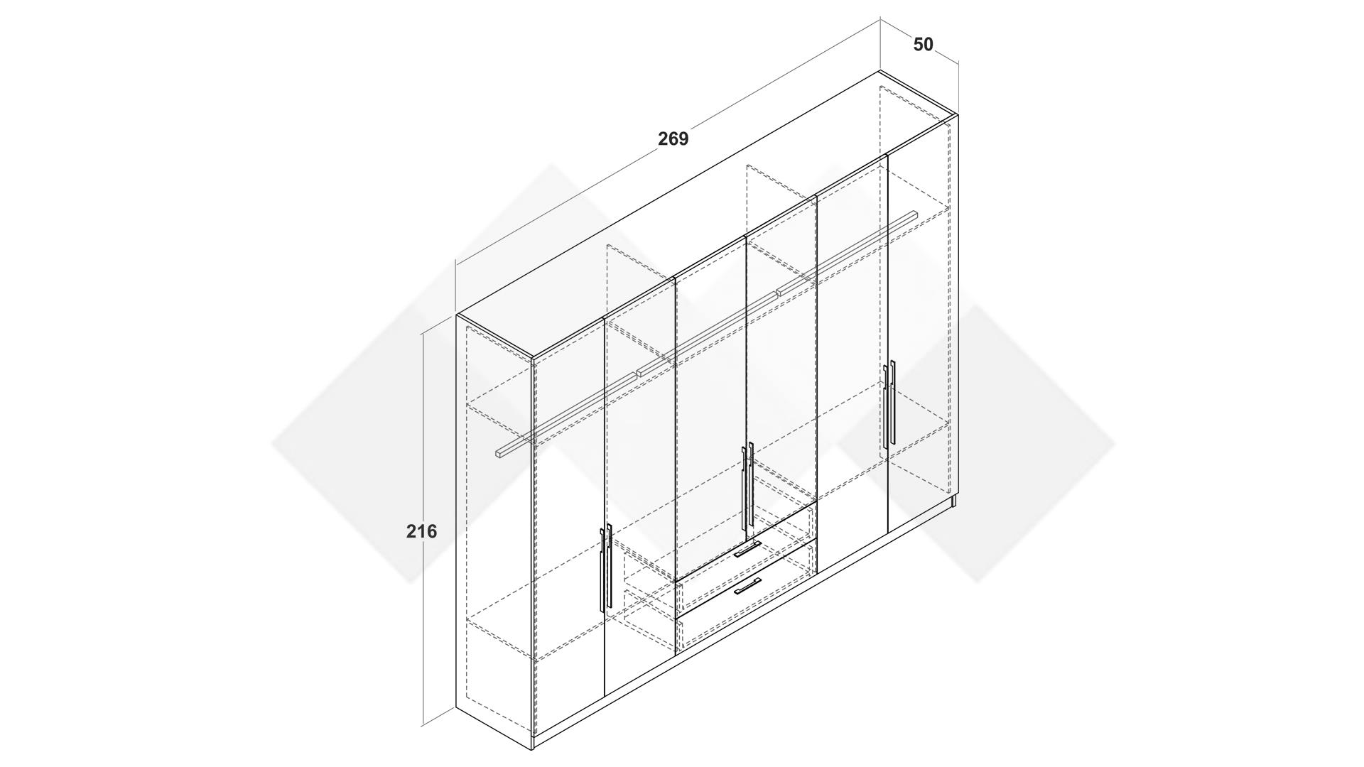 ✓ 18 мм ПДЧ ✓ шесткрилен ✓ 5 рафта ✓ 3 лоста за закачалки ✓ 2 чекмеджета ✓ плавно затваряне на вратите ✓ модерен декор ✓ качествена изработка