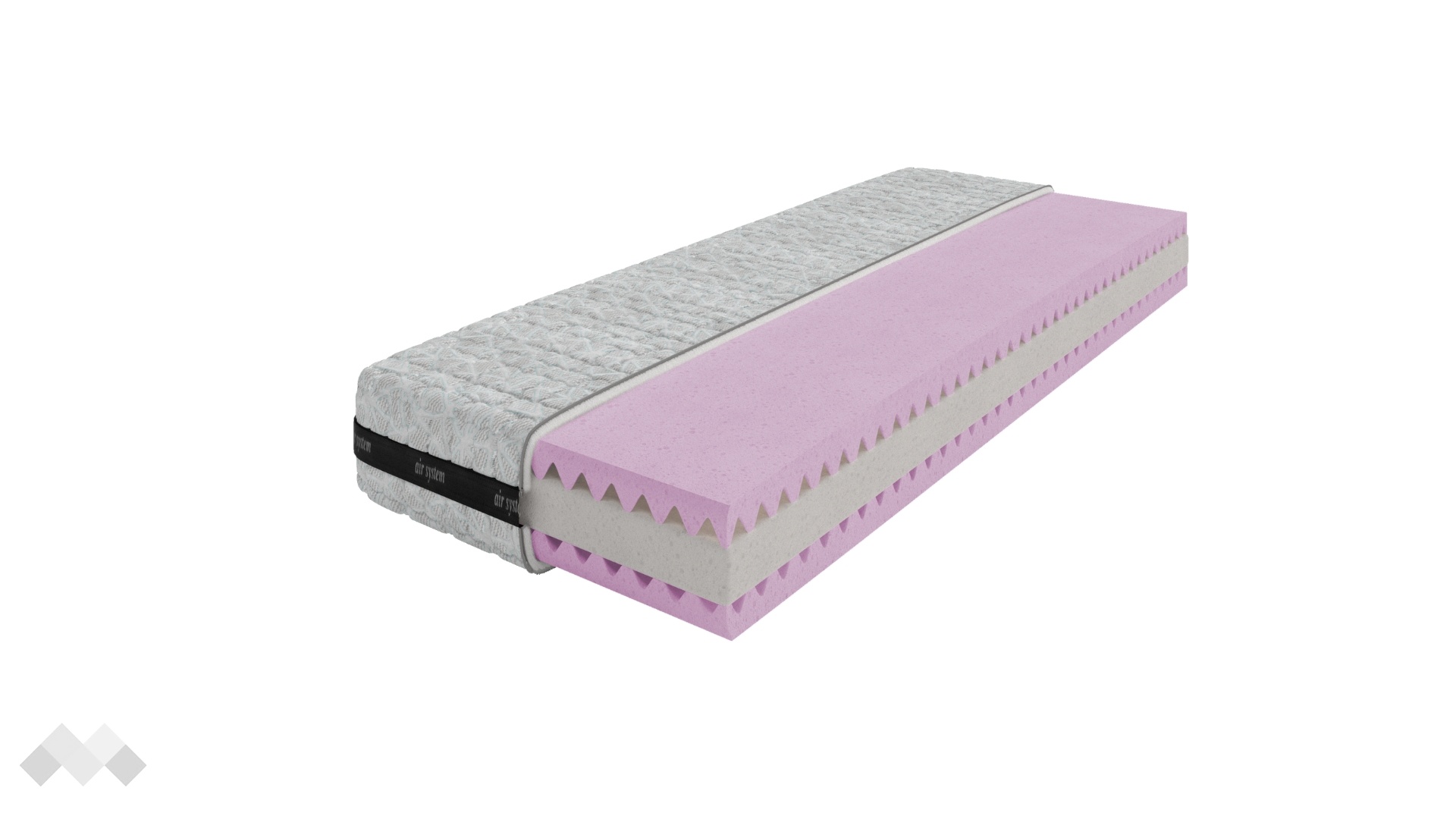 Ядрото е конструирано без използване на лепила – слоевете са обединени във вътрешен памучен калъф, който предотвратява разместване, задържане на влага и запарване. Тази специална структура осигурява усещане, подобно на пружинно ядро, без наличието на пружини, гарантира пълна проветривост и защита от деформации и микроорганизми.