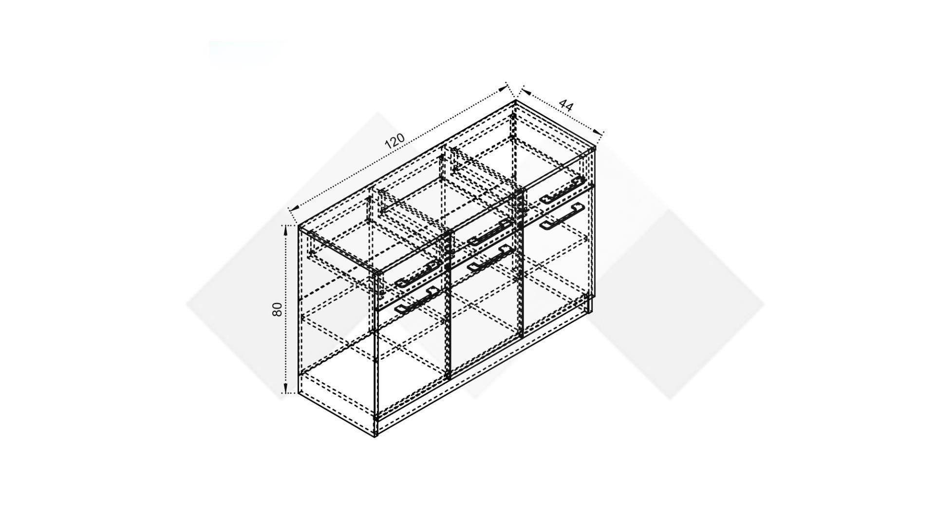 Скринът разполага с три просторни чекмеджета, които предлагат достатъчно място за съхранение на бельо, аксесоари или други лични вещи. Чекмеджетата са снабдени с телескопични водачи, което прави изтеглянето им леко и стабилно, като издържат и при по-голямо натоварване.