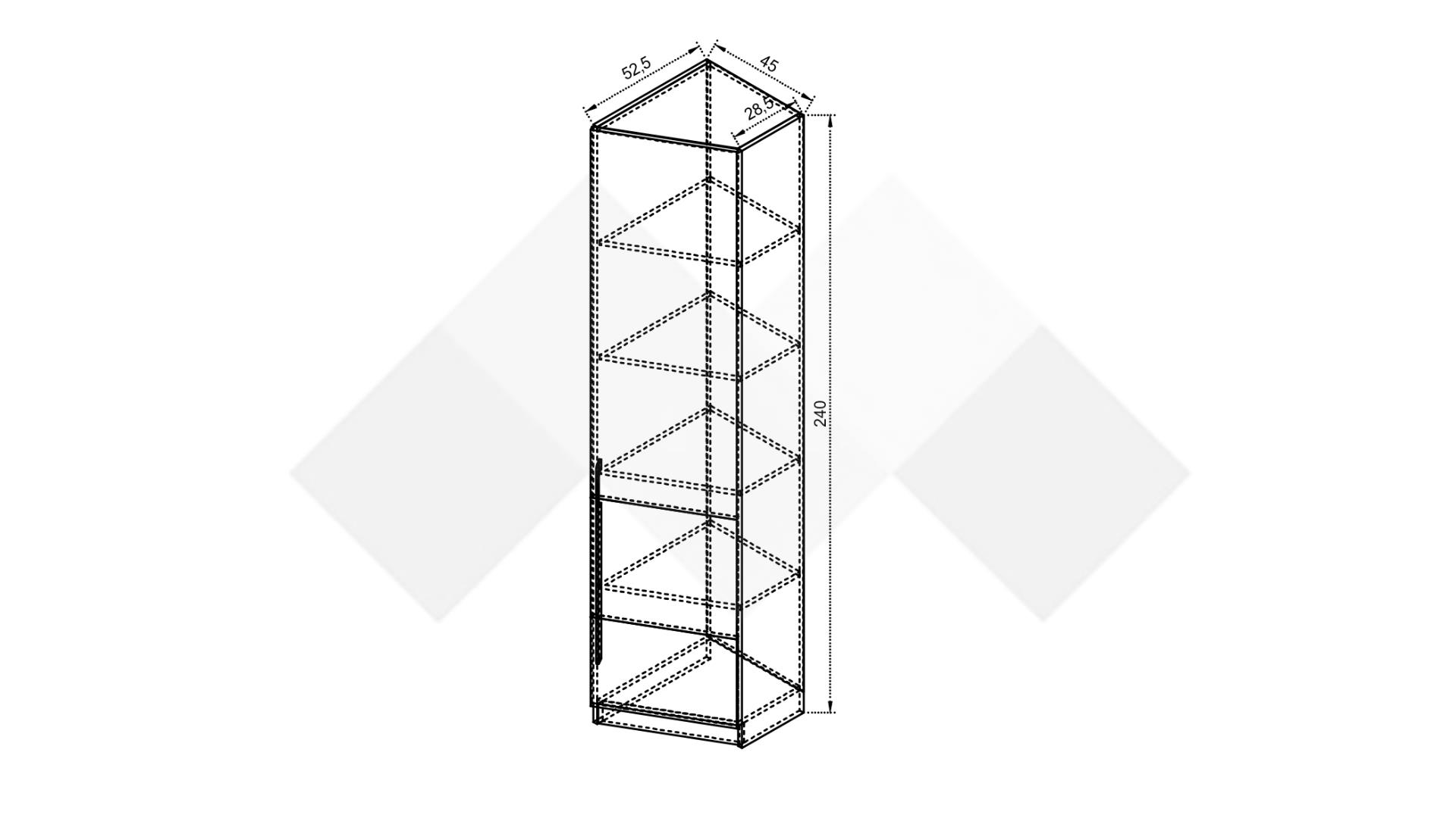 Д: 45 см Ш: 52,5-28,5 см В: 240 см