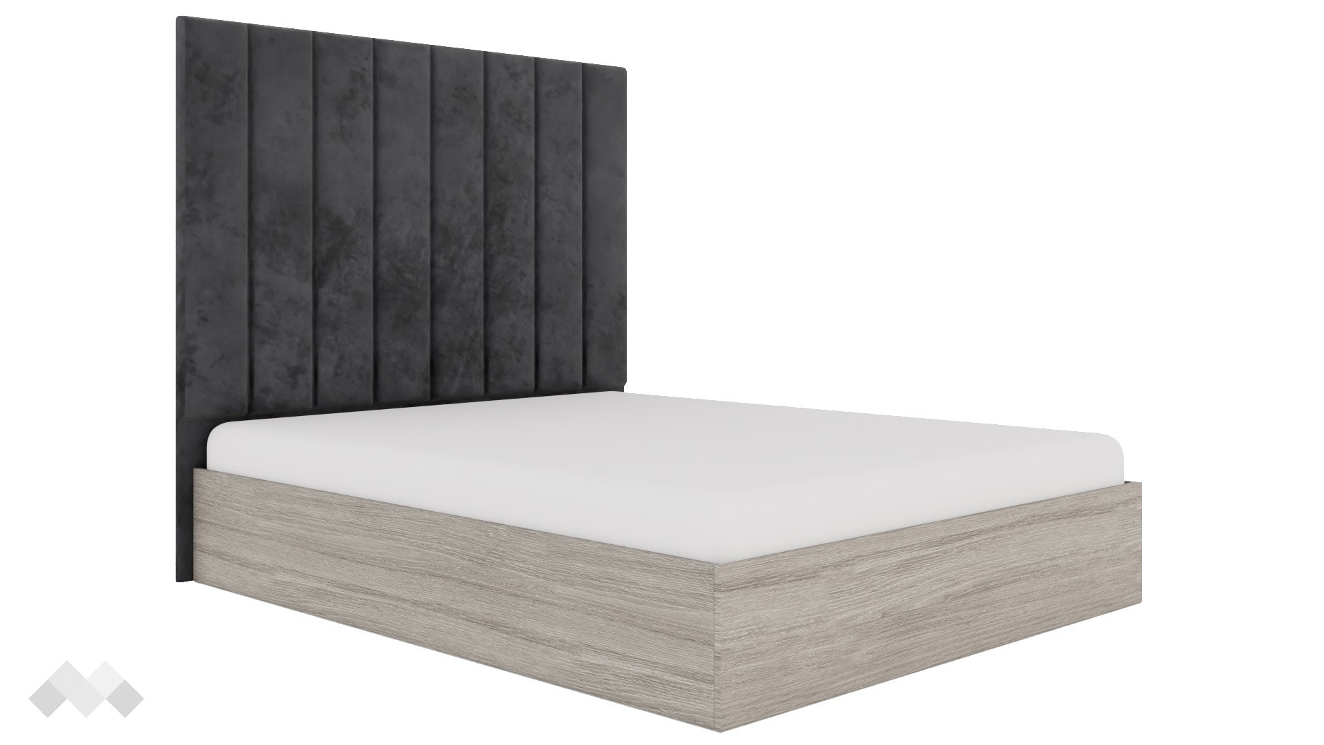 Спалнята ще ти осигури необходимото пространство за спокоен и комфортен сън. Тя е за матрак с размер 160/200 см. Високата, тапицирана табла на модела го превръща в перфектния избор за любителите на отдиха, защото ти позволява да се облегнеш комфортно и да се отдадеш на заслужена почивка по възможно най-удобния начин за теб. Таблата е с приятна и мека на допир сива дамаска. Любима книга или вечерното предаване - изборът е твой, единственото сигурно нещо е, че ще се чувстваш по-приятно от всякога.