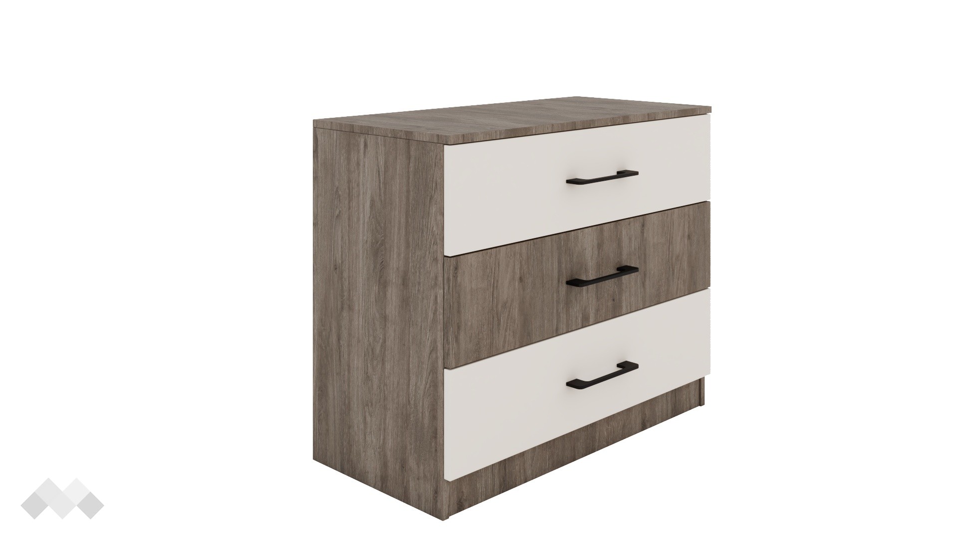 Скринът с три чекмеджета е изключително практичен за съхранение на дрехи, спално бельо и лични вещи. Чекмеджетата са снабдени с телескопични водачи, което прави изтеглянето им леко и стабилно, като издържат и при по-голямо натоварване.