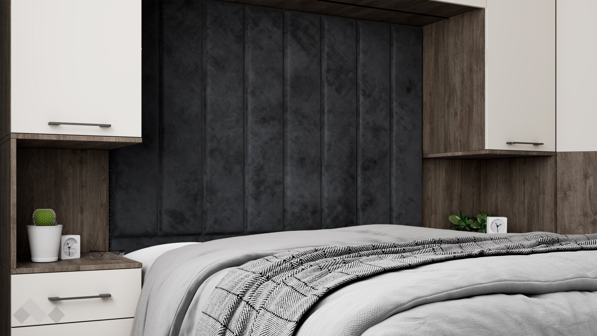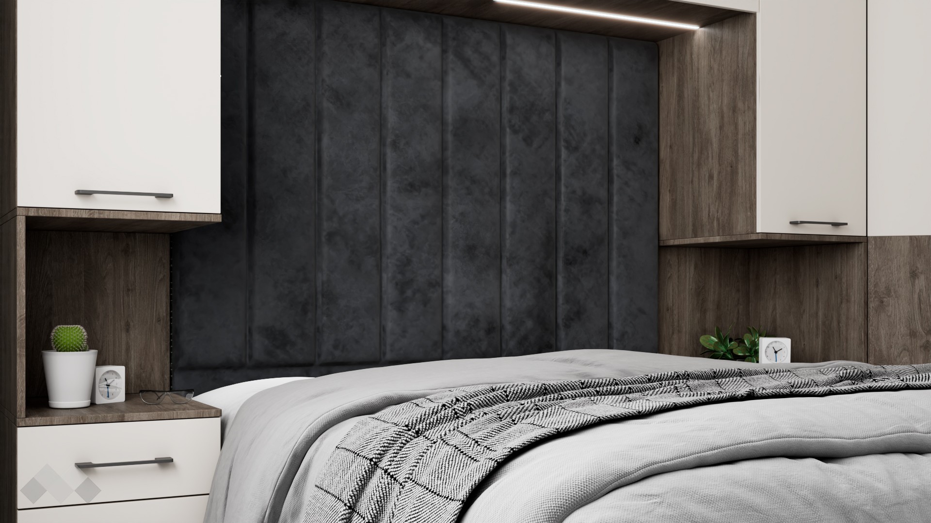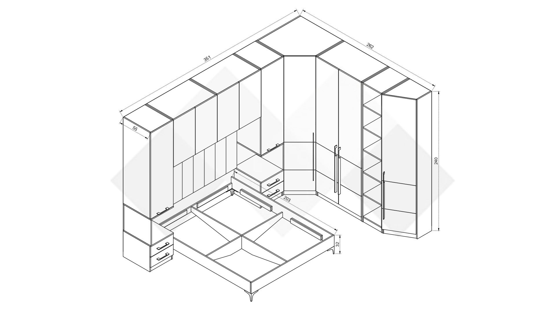 ✓ 18 мм ПДЧ ✓ спалня за матрак 160/200 ✓ тапицирана табла ✓ гардеробна система ✓ механизъм за плавно затваряне ✓ надстройка с LED осветление ✓ модерен и функционален дизайн