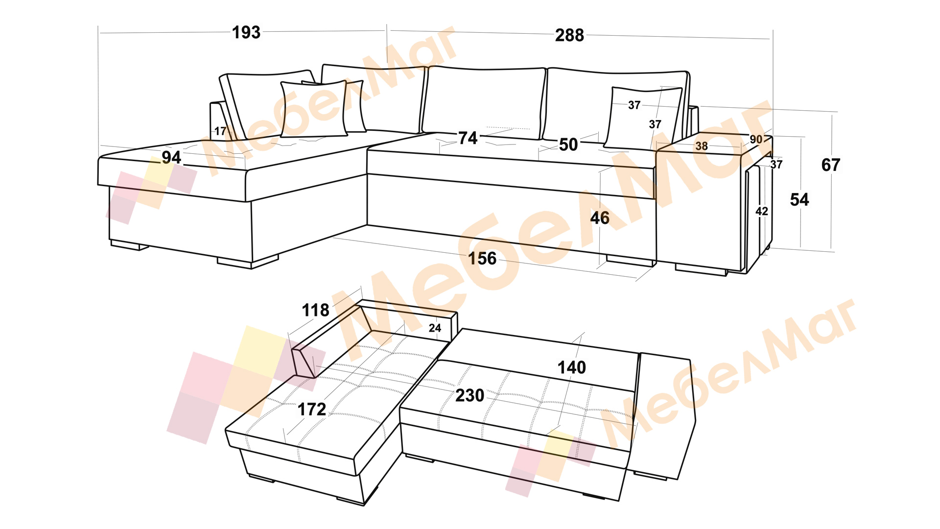 Д: 288 см Ш: 193 см В: 67 см