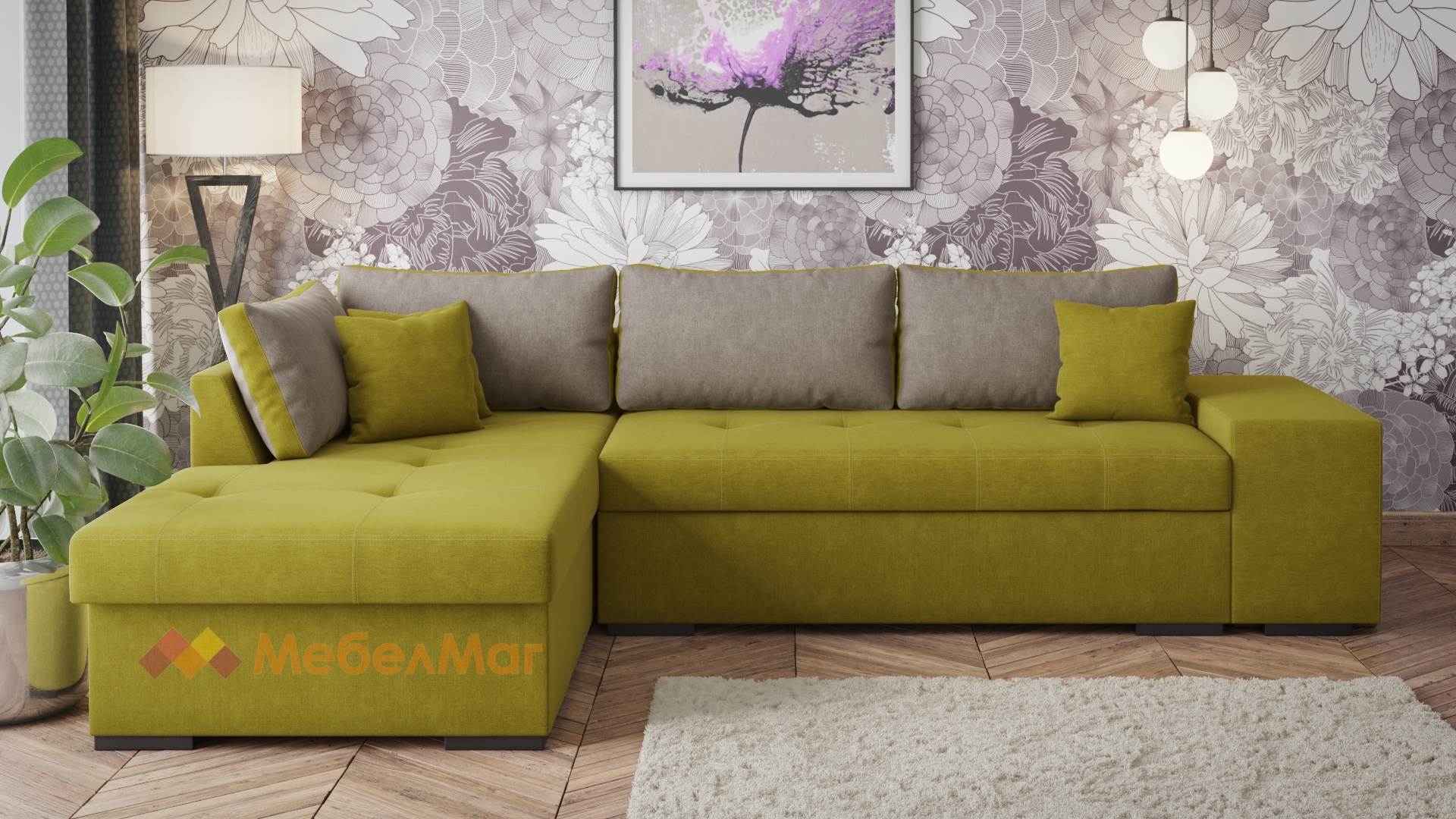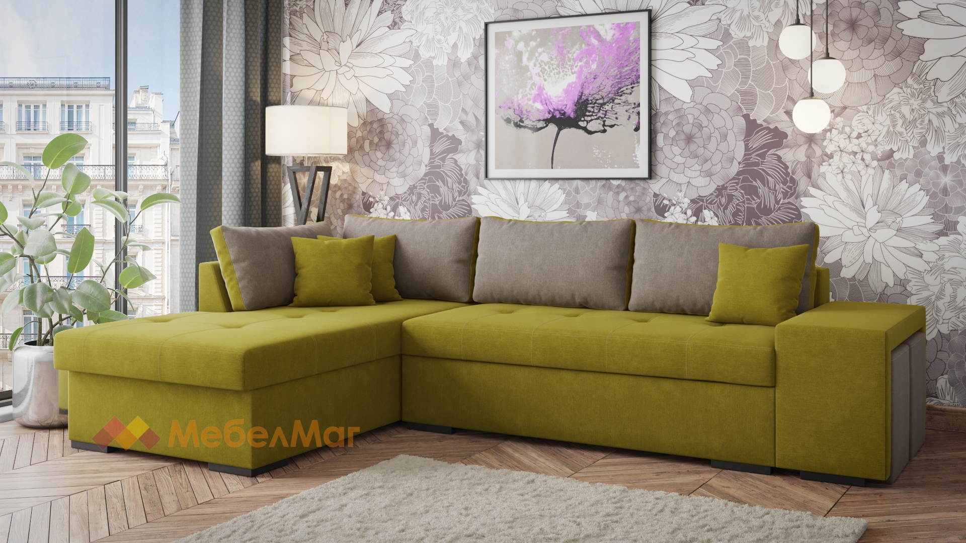 Ъглов диванКристиназелен със сиво с посока: ляв ъгъл