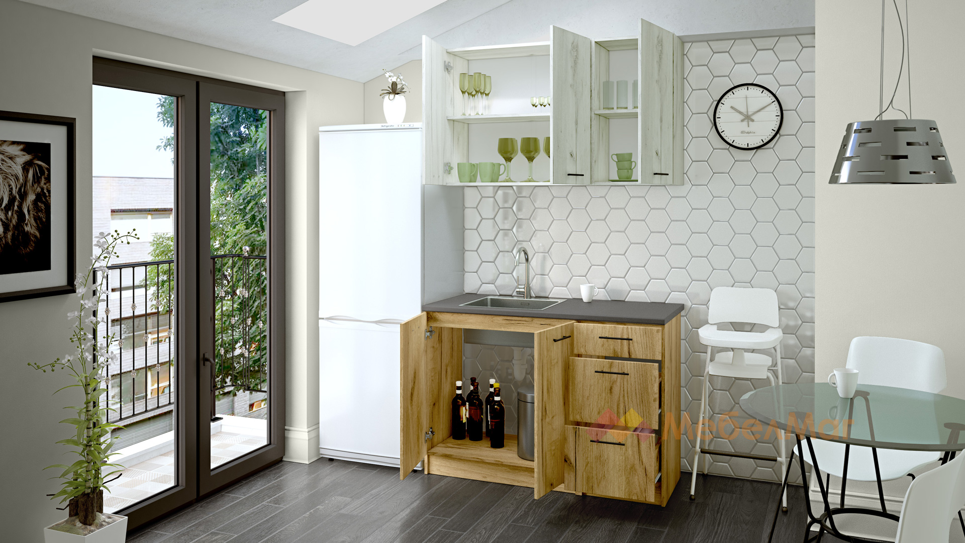 ⭐ Предимства: ✓ компактна и практична ✓ шкаф за мивка ✓ шкаф с чекмеджета ✓ с монтаж към стената