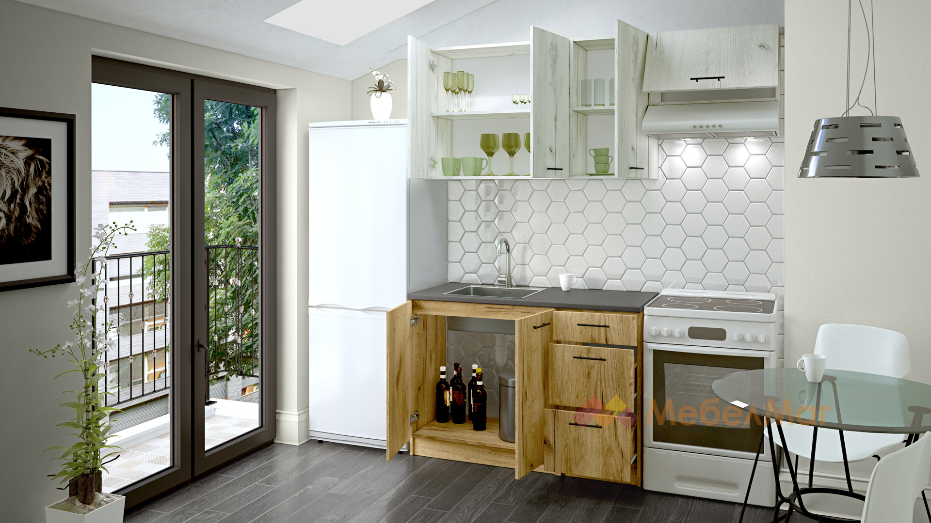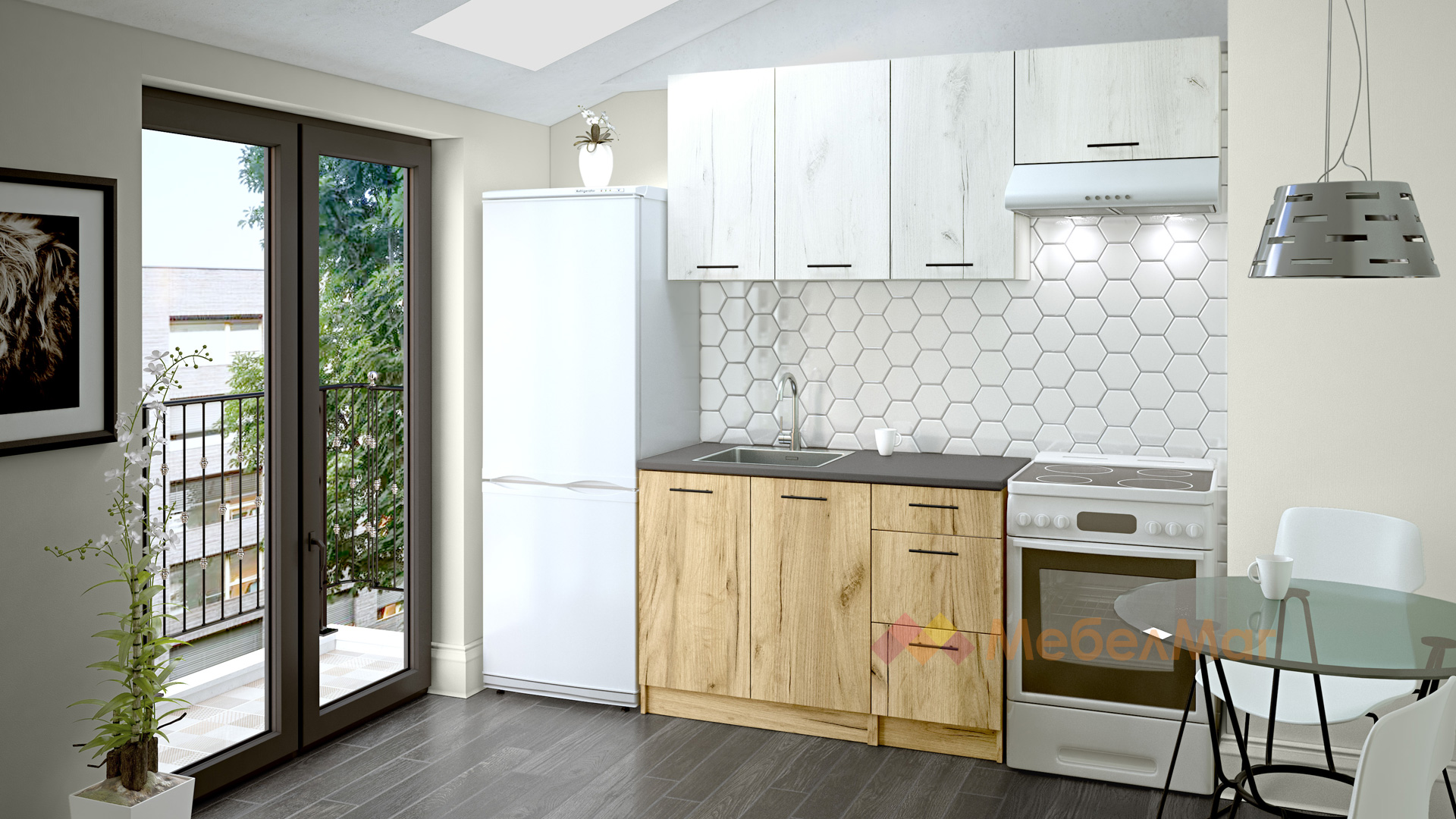 КухняНикея 120 Н3златен дъб с дъб крафт бял прави