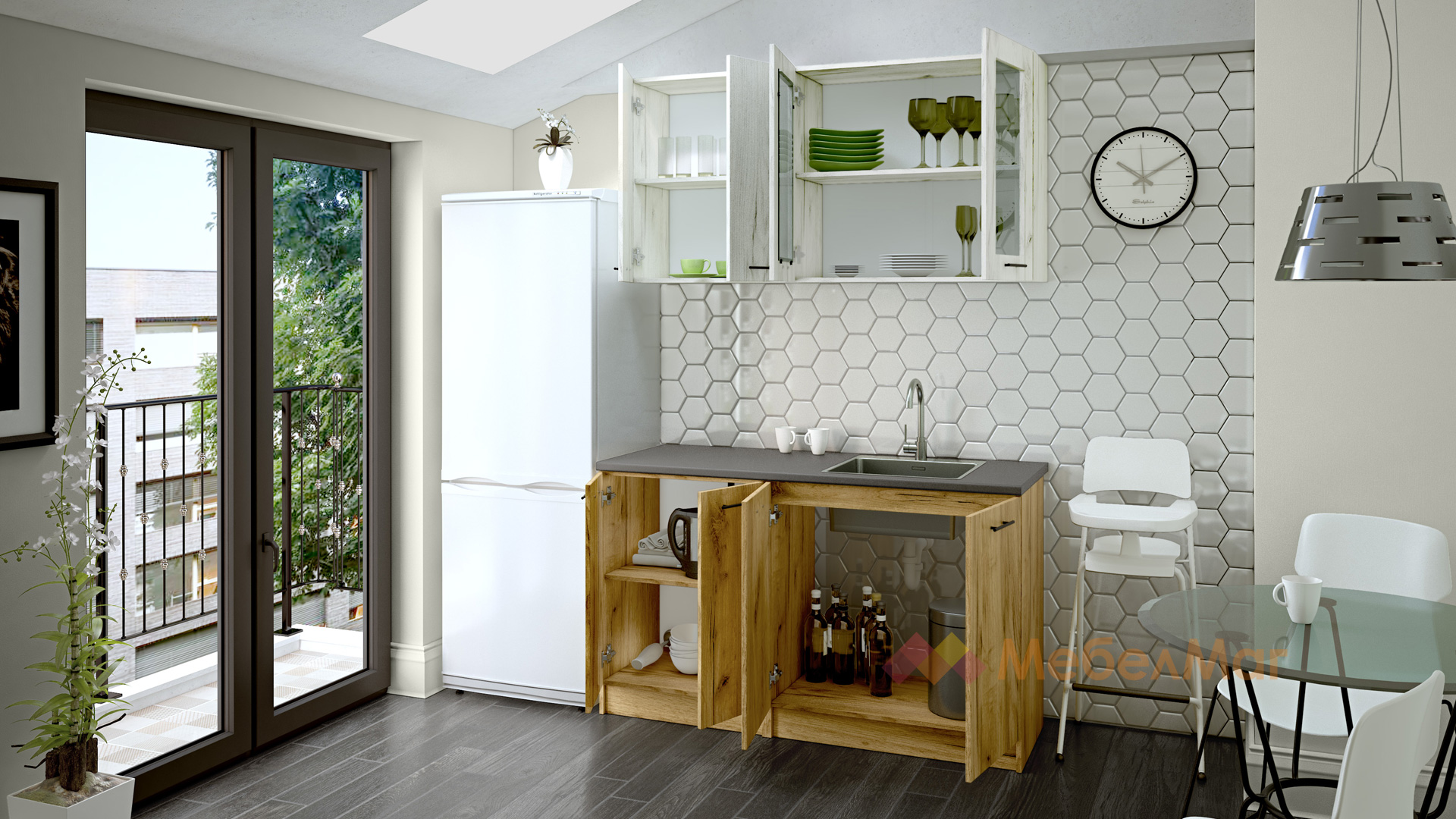 ✓ компактна и практична ✓ шкаф за мивка ✓ шкафчета с витрини ✓ с монтаж към стената
