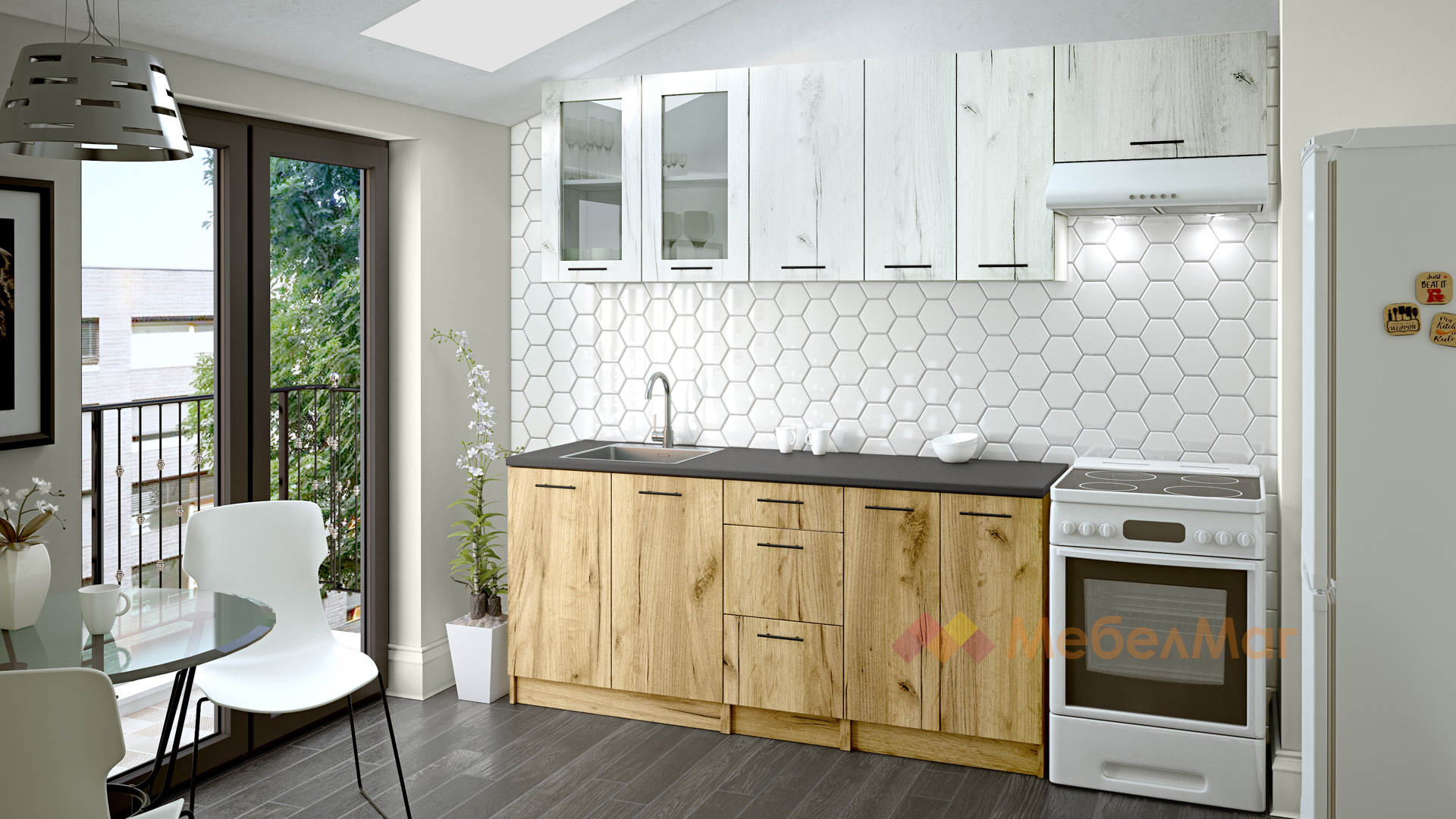 КухняНикея 180 Н4златен дъб с дъб крафт бял прави