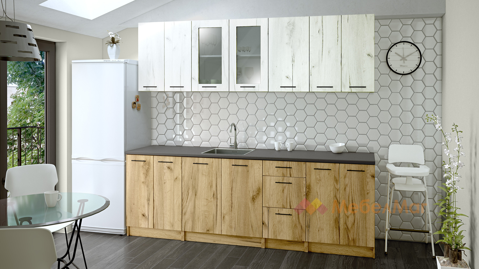 КухняНикея 240 Н2златен дъб с дъб крафт бял прави