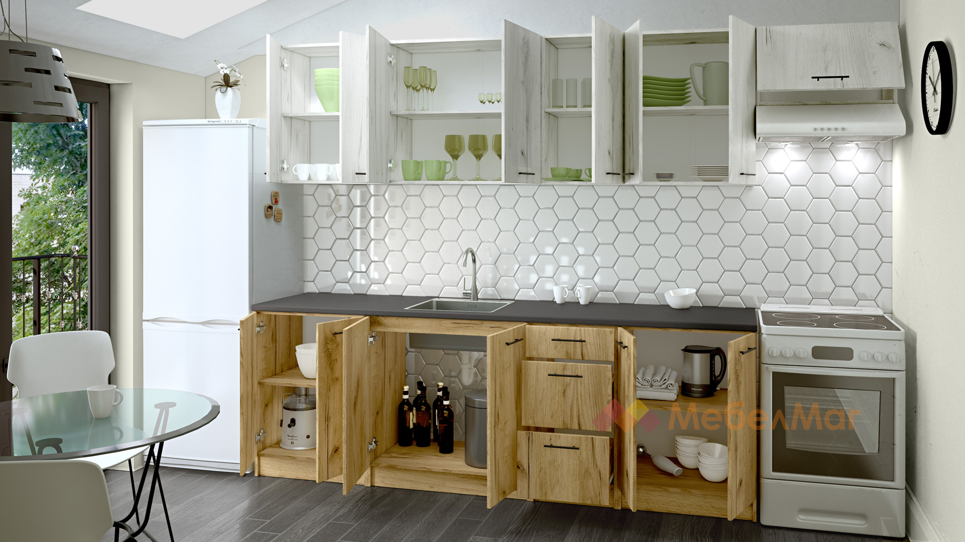 КухняНикея 240 Н3златен дъб с дъб крафт бял прави