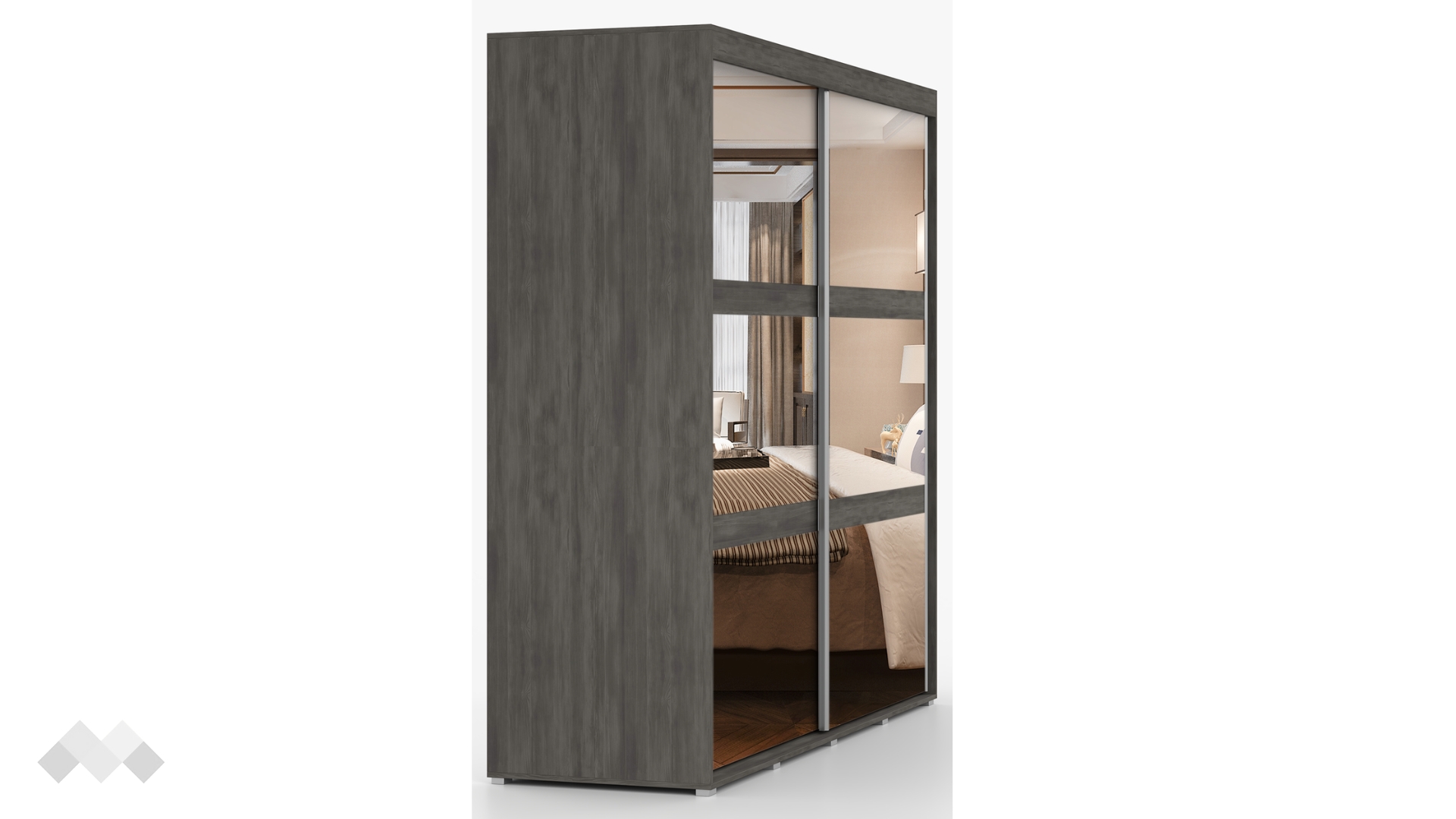 Гардероб с плъзгащи врати Латте е практичен и удобен - плъзгащите врати не изискват място при отваряне. Това го прави подходящ в случаите, когато имаш много дрехи и малко място. Зад вратите ще откриеш просторни десет рафта за сгънати дрехи, малки ел. уреди, сезонни дрехи, а на двата лоста за закачалки ще можеш да закачиш прилежно изгладените ризи или обемни якета. Огледалата на вратите са най-голямата помощ преди да излезеш на разходка - може да огледаш финално своята визия.