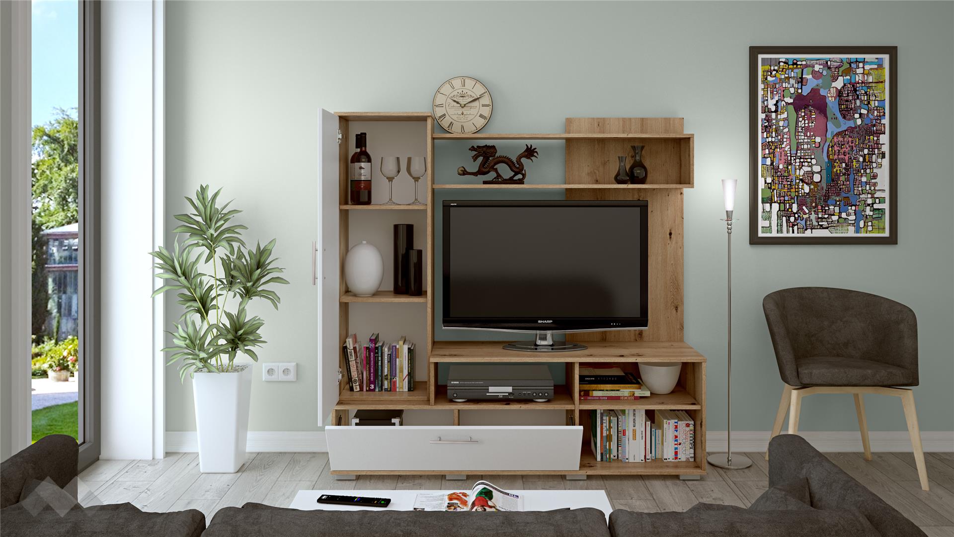 ТВ шкафа предлага достатъчно пространство, където да поставиш цялата си съпътстваща техника като ТВ приемници, DVD плейъри и други. Можеш да ги организираш където пожелаеш - в затворено шкафче или отворените ниши.