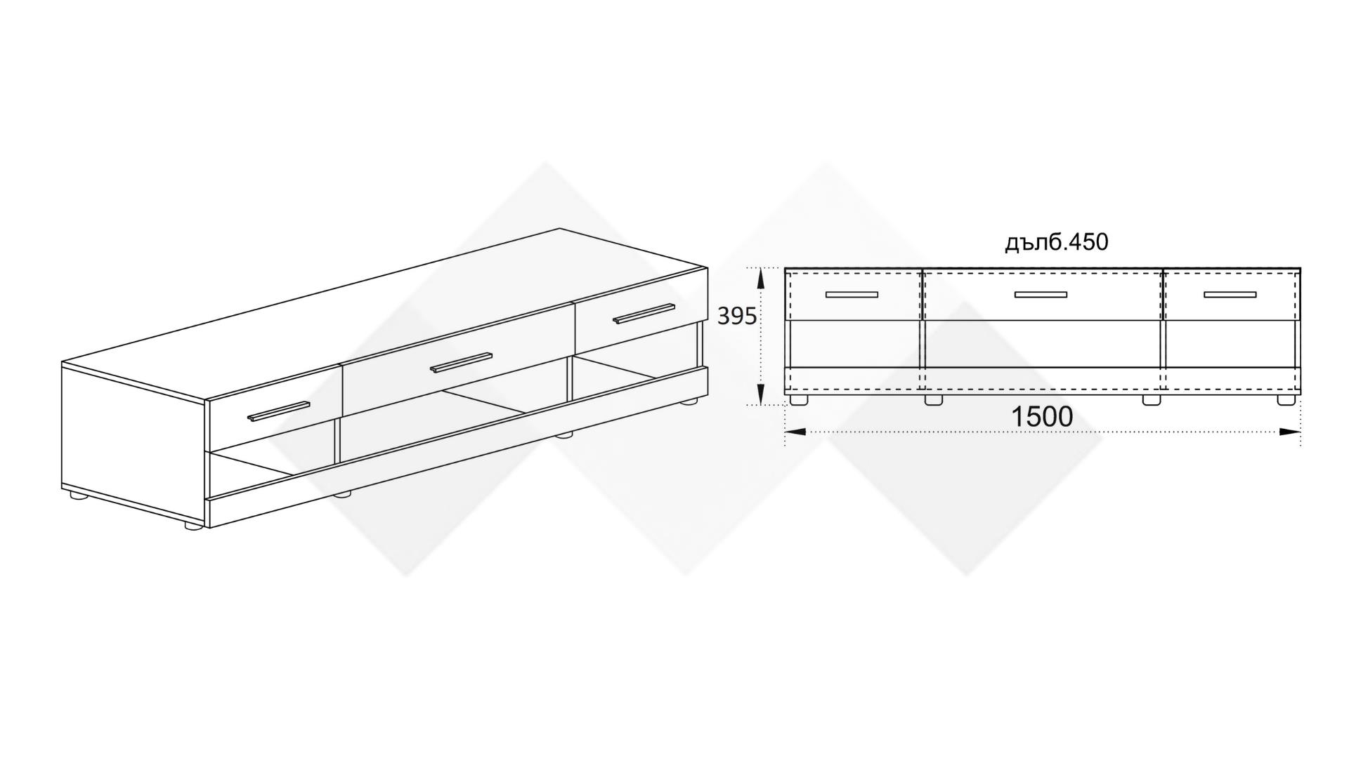 ТВ шкаф Лизи 3 е изработен от висококачествено 16 мм ПДЧ, гаранция за здравина и стабилност.