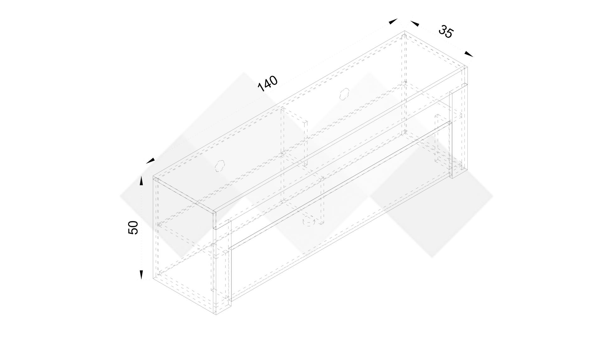 Д: 140 см Ш: 35 см В: 50 см