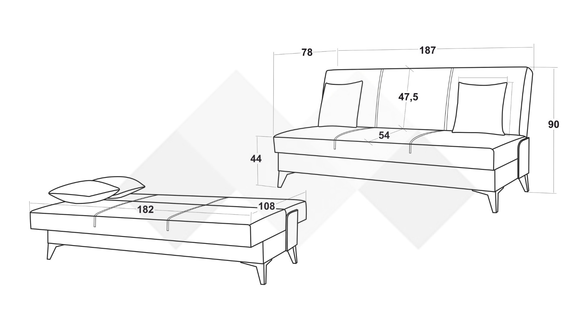 Благодарение на семплия и изчистен дизайн на модела, той ще се впише перфектно в интериора ти, без да привлича излишно внимание, но и ще се превърне в любимата мебел, с която определено можеш да се похвалиш. Вграденият клик-клак механизъм превръща модела с минимални усилия в удобно легло - 108/182 см, което ще те предразположи да се отпуснеш за къса следобедна дрямка или почивка с книга в ръка. Ще разполагаш и с просторна ракла за вещите, които искаш да скриеш от погледа на гостите си, за да остане стаята чиста и подредена.