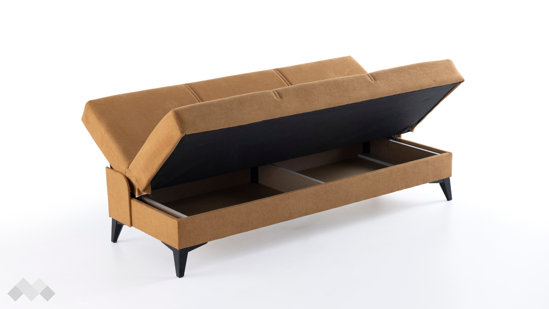 Благодарение на семплия и изчистен дизайн на модела, той ще се впише перфектно в интериора ти, без да привлича излишно внимание, но и ще се превърне в любимата мебел, с която определено можеш да се похвалиш. Вграденият клик-клак механизъм превръща модела с минимални усилия в удобно легло - 108/182 см, което ще те предразположи да се отпуснеш за къса следобедна дрямка или почивка с книга в ръка. Ще разполагаш и с просторна ракла за вещите, които искаш да скриеш от погледа на гостите си, за да остане стаята чиста и подредена.