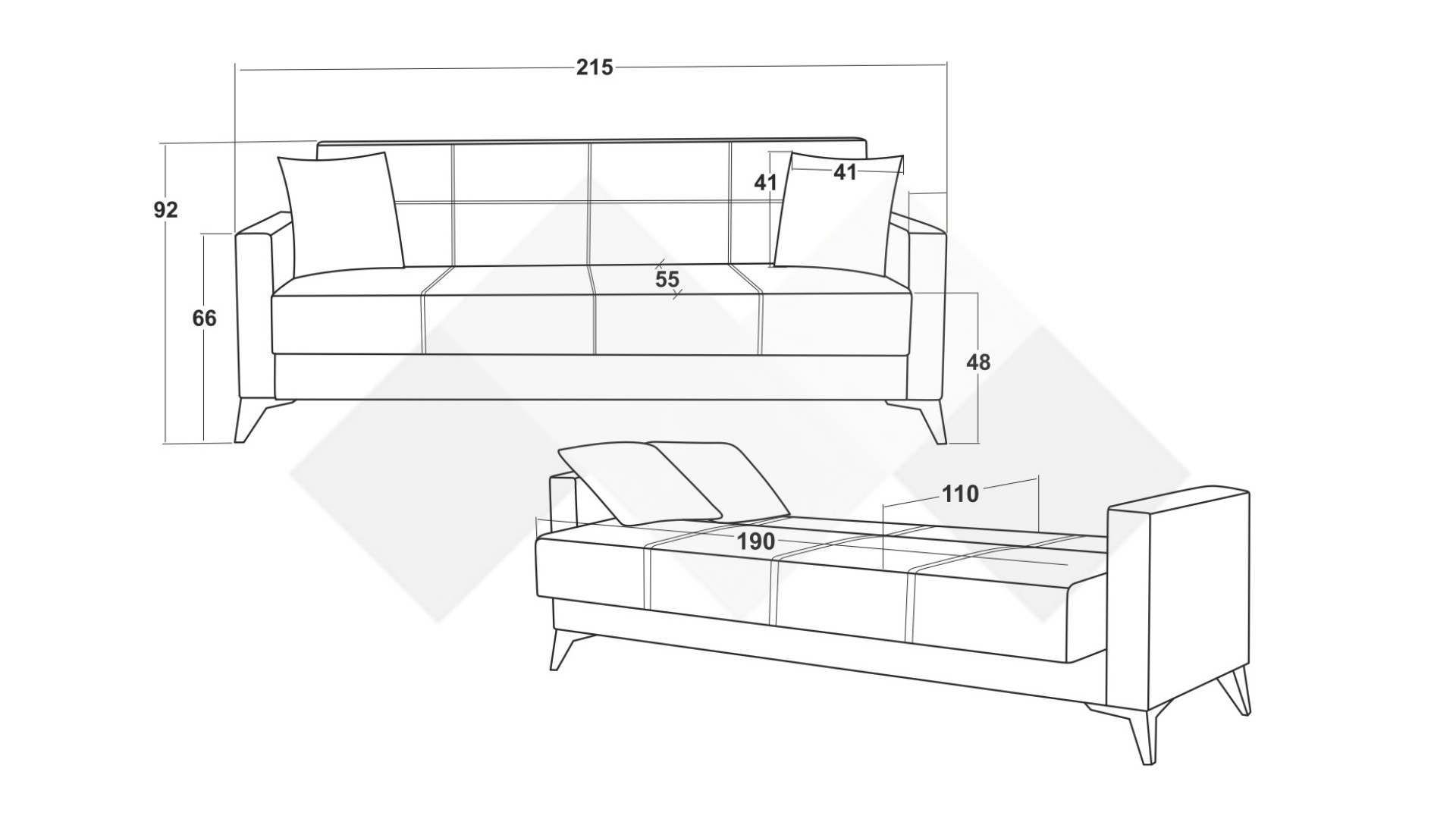 С функцията за сън чрез клик-клак механизъм, диванът се превръща в легло само с едно движение. Мястото за сън е подходящо и за ежедневно ползване, а вложеният пружинен пакет Бонел допринася за мекота и комфорт както при сядане, така и при лежане.
