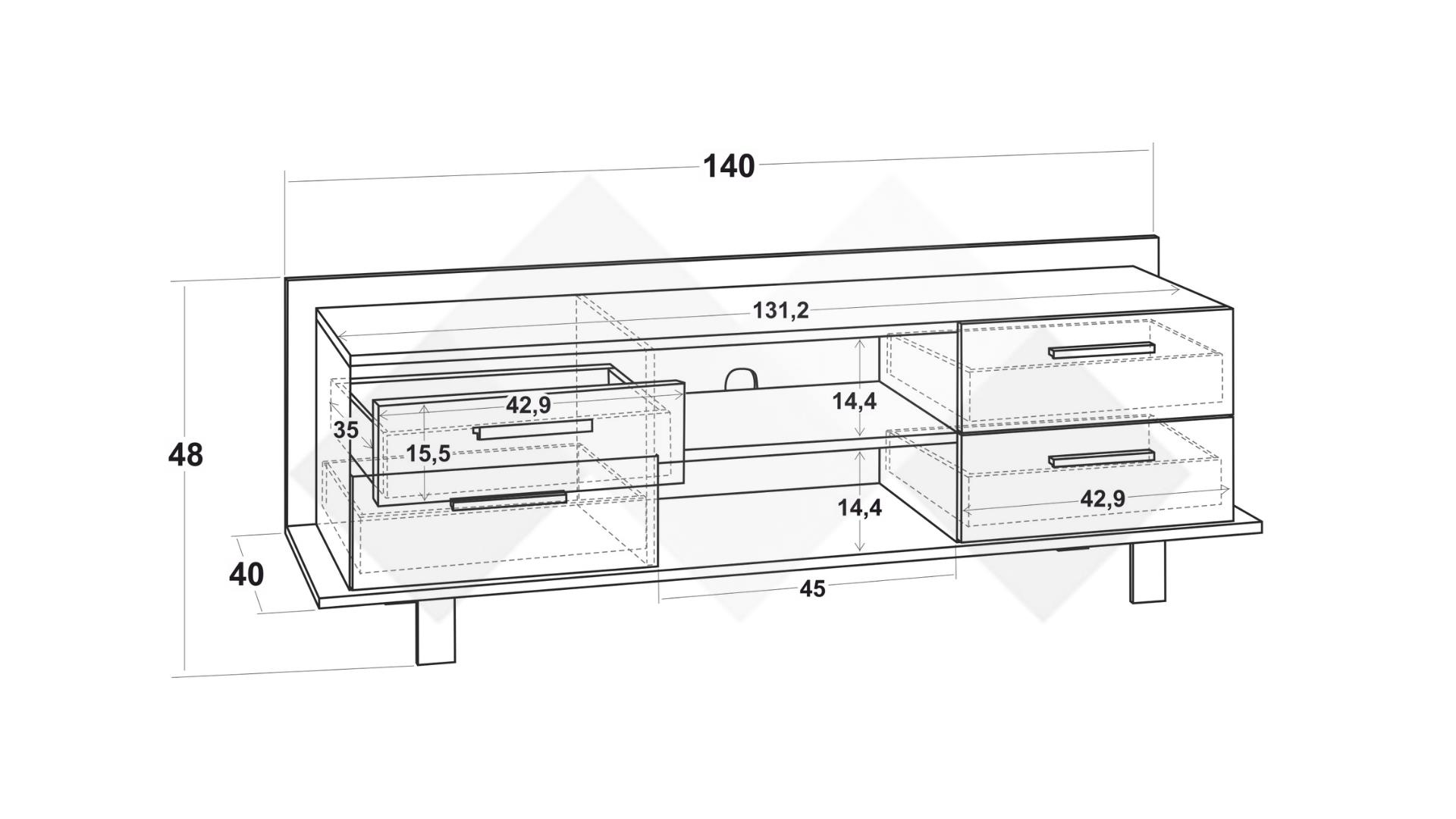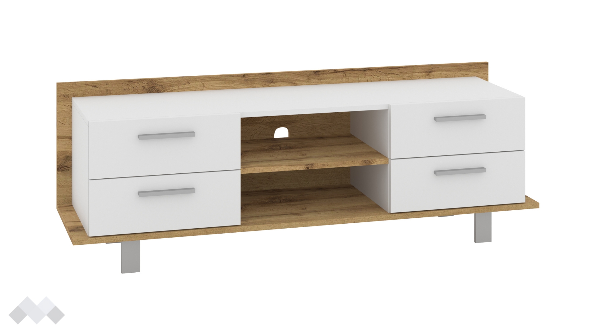 ТВ шкаф Модика се състои от 4 чекмеджета, рафт и удобен плот, на който можеш да поставиш своя телевизор. Рафтът в средата е чудесно място за любимите ти книги, сувенири и декорации. В чекмеджетата можеш да организираш всички вещи, които искаш да останат скрити, или техника, която не използваш толкова често, но в същото време ще ти е винаги под ръка.