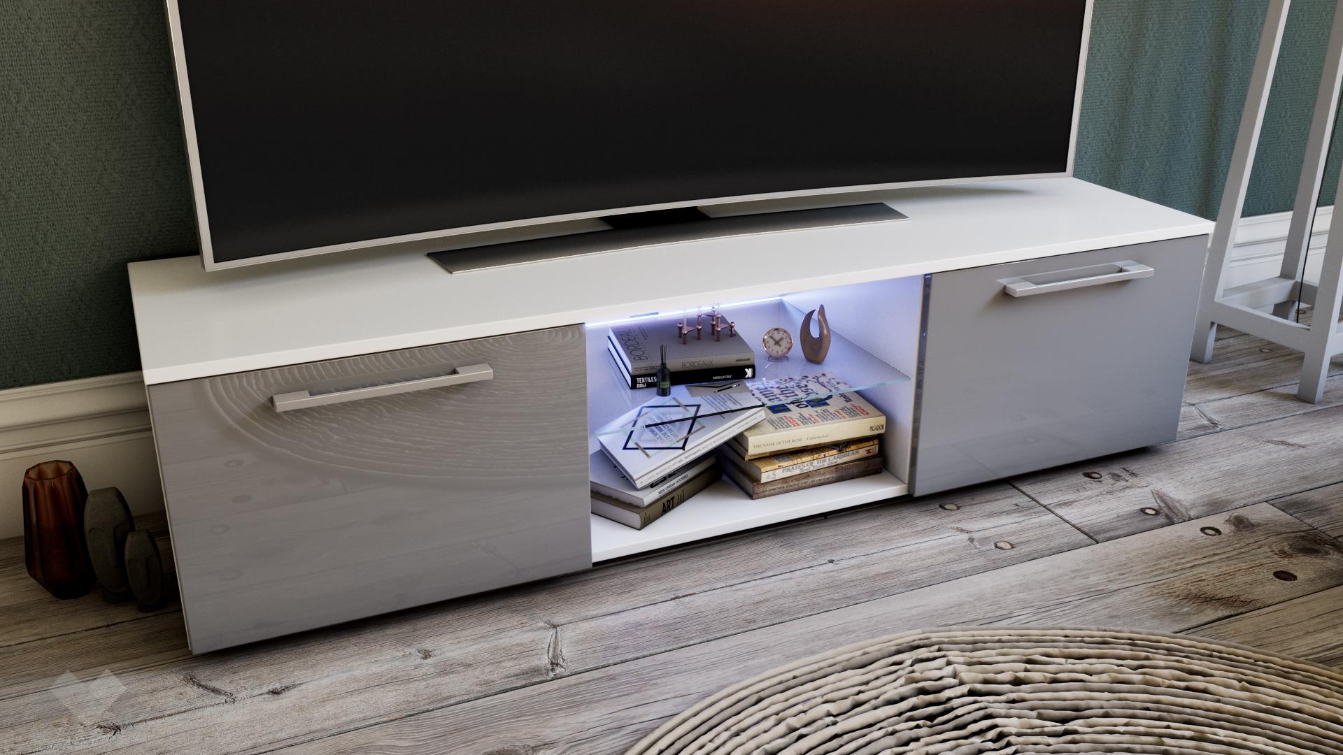 ТВ шкафМуунбяло със сив гланц
