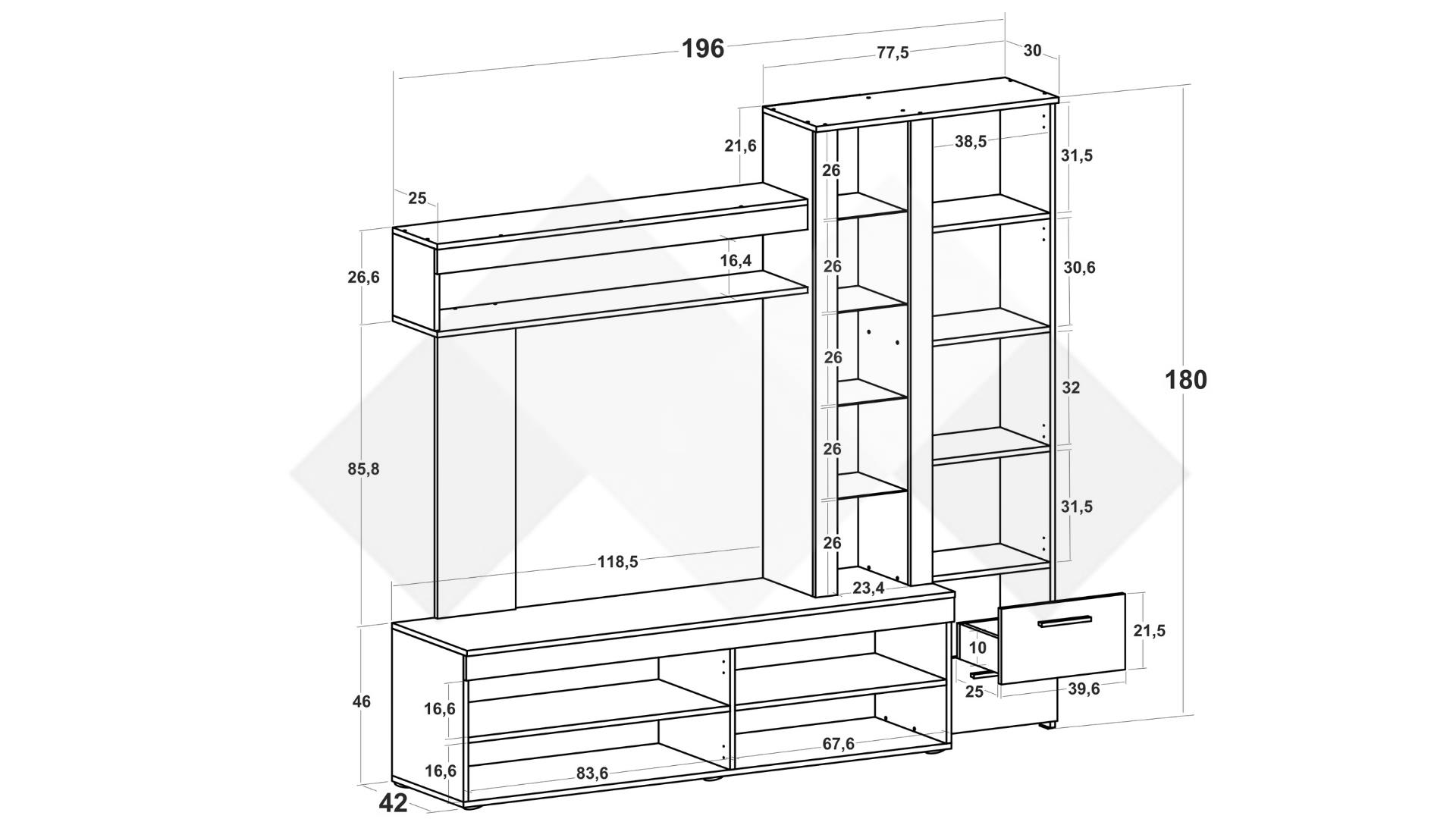 Секция Неапол съчетава модерен дизайн и функционалност, като предлага перфектното решение за организиране на всекидневната. С елегантния си вид и практично разпределение, тя ще внесе уют и стил в дома ти.
