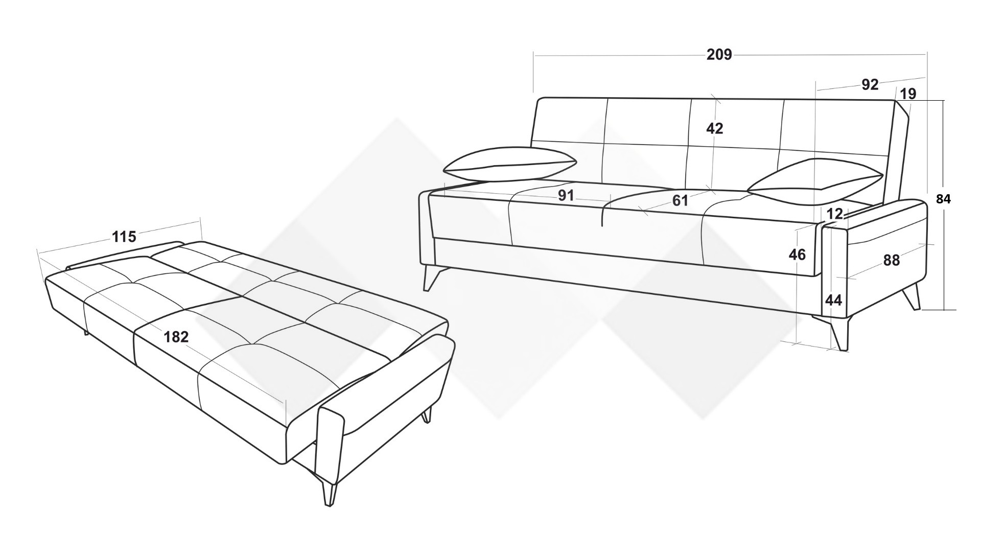 Непретенциозен, семпъл, но в същото време и изтънчен дизайн са характеристиките, които превръщат този модел в истински шедьовър. Освен с красивия си външен вид, клик-клак канапе Нейт ще те впечатли със своята функционалност. Благодарение на вградения клик-клак механизъм, моделът за секунди се превръща в просторно легло - 115/182 см, което ще предразположи всеки любител на късите следобедни дрямки. Още едно предимство на модела е обширната ракла под дивана, която ти осигурява допълнително пространство за съхранение на личните ти вещи.