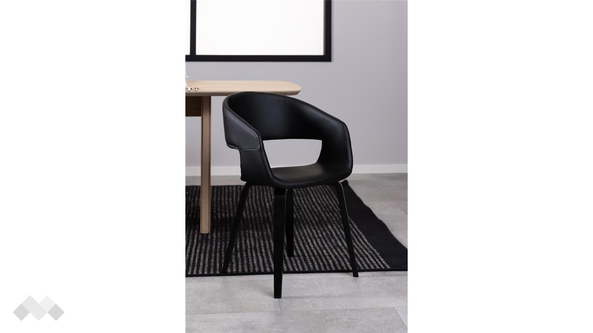 Трапезен стол Новелия съчетава елегантност и стил. Със своите оформени крака и тапицерия от гладка изкуствена кожа, този стол предлага както комфорт, така и изчистен, съвременен вид.