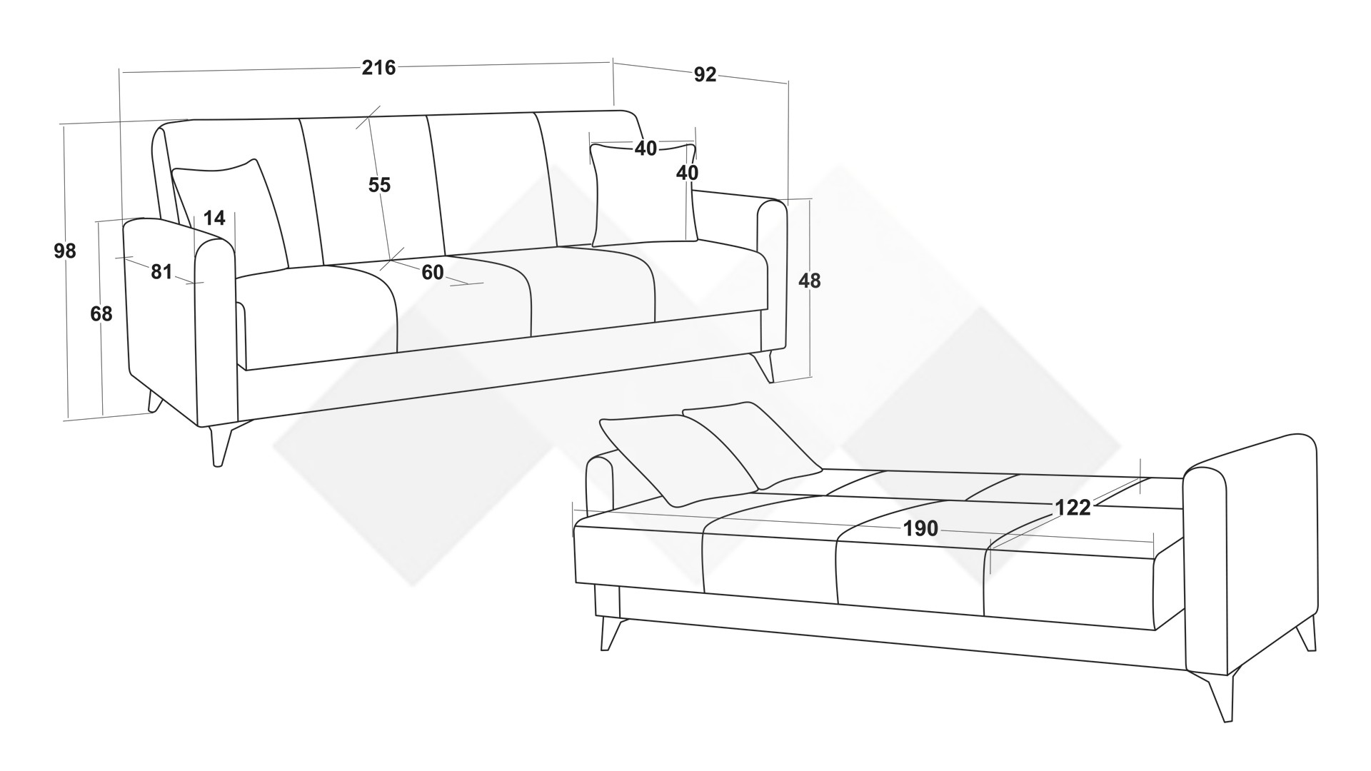 Благодарение на клик-клак механизма, диванът се трансформира бързо и лесно в удобно легло с площ за сън 190/122 см. Само с едно движение можеш да го разгънеш или прибереш, което го прави изключително удобен за ежедневна употреба или за настаняване на гости.