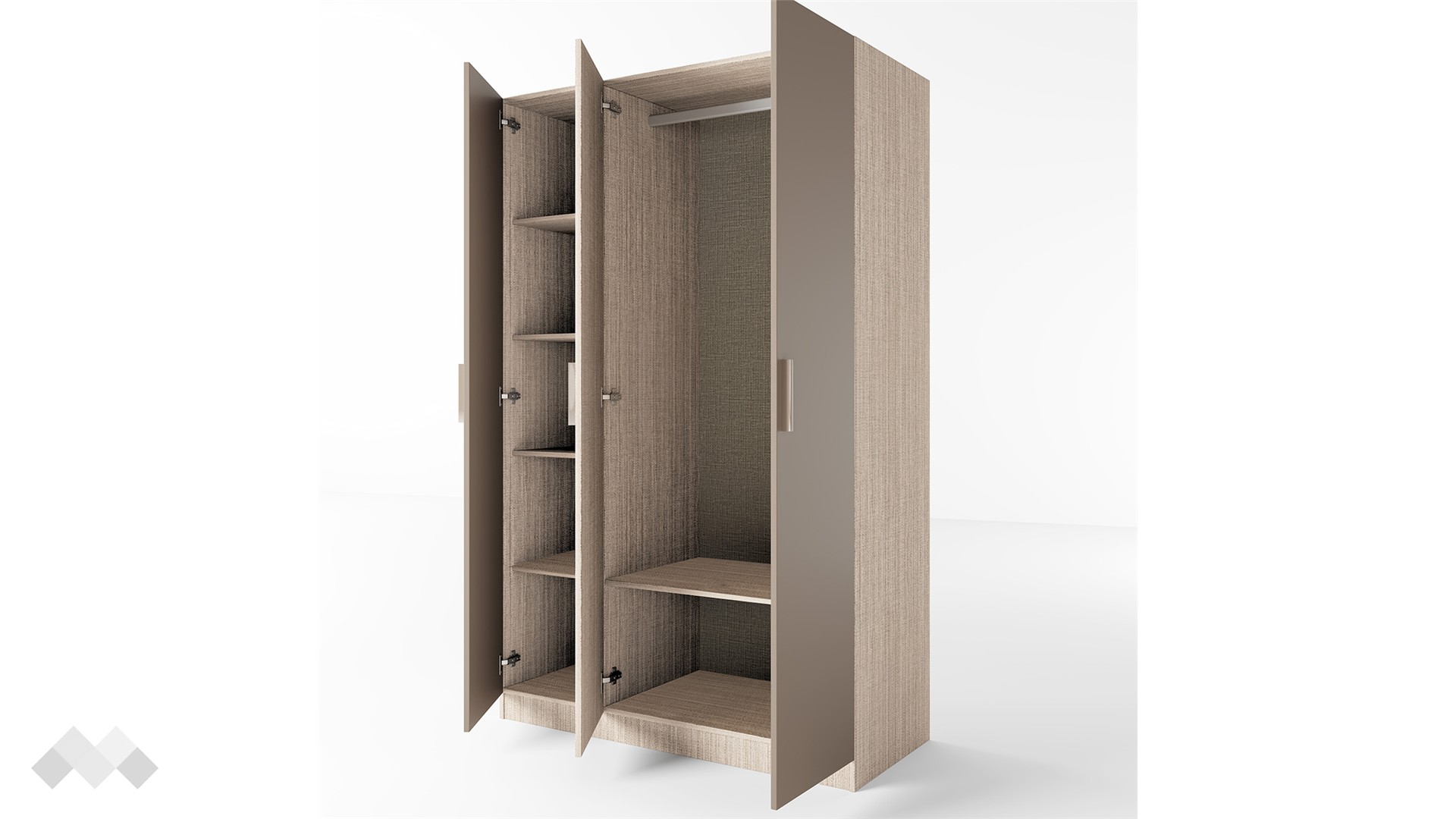 Гардероб Провидънс се състои от лост и рафт зад двете врати, както и 4 рафта в третото крило. Друго предимство е централното огледало, което не само че прави стаята по-осветена, но и е верен помощник в избора на тоалет всеки ден. Гардеробът има уникално разпределение, което ще ти позволи да подредиш добре всички дрехи и аксесоари.