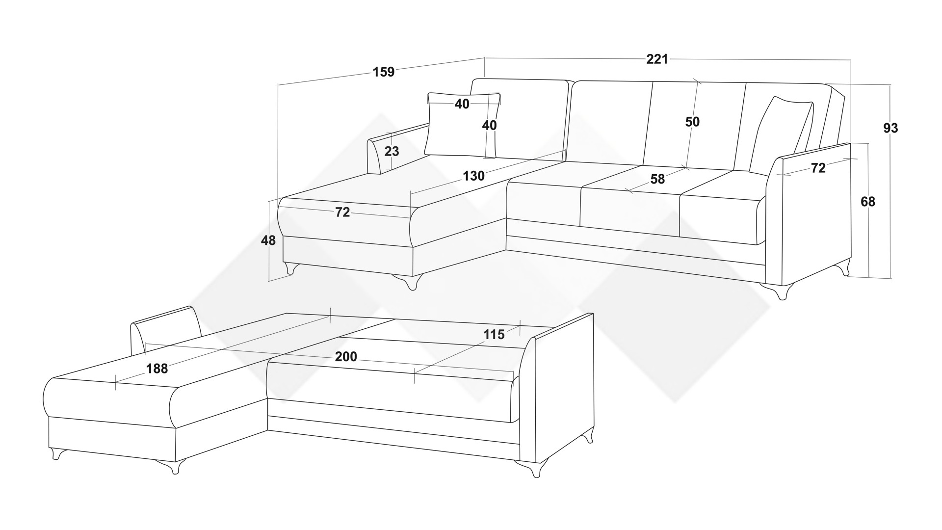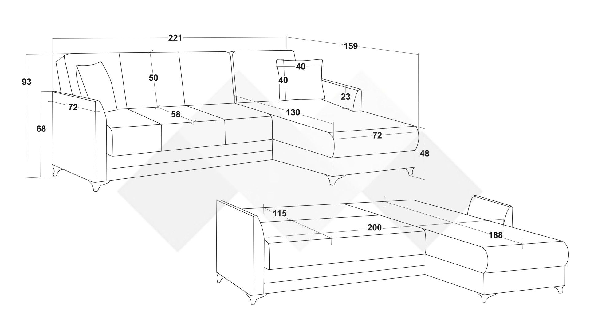 Конструкцията на дивана е изработена от комбинация от масивна дървесина, ПДЧ, метал и Бонел пружина, която гарантира дълготрайна стабилност и издръжливост на модела.