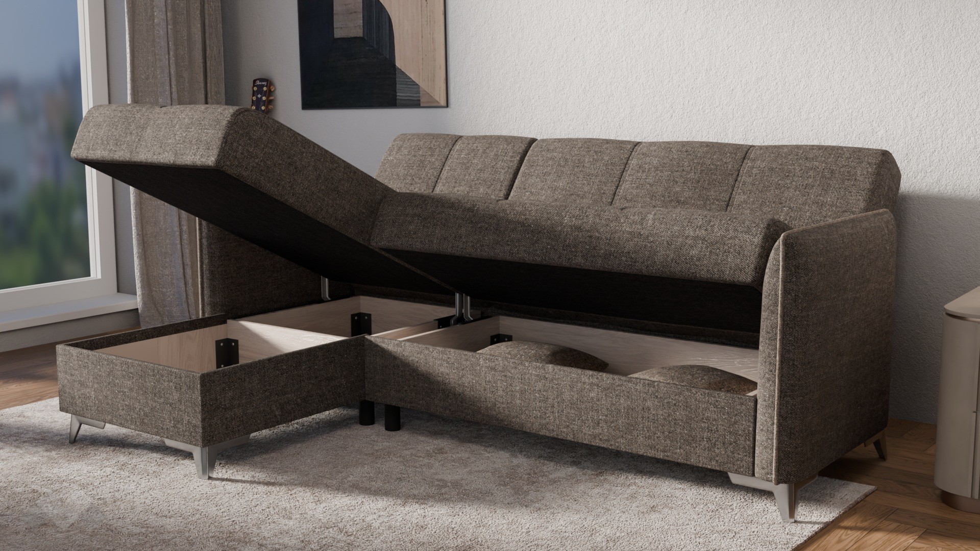 Ъгловият диван Сафо е създаден с мисъл за динамичното ежедневие – лесен за използване, удобен и функционален. Той предлага всичко необходимо за комфортна почивка, без да заема излишно пространство.