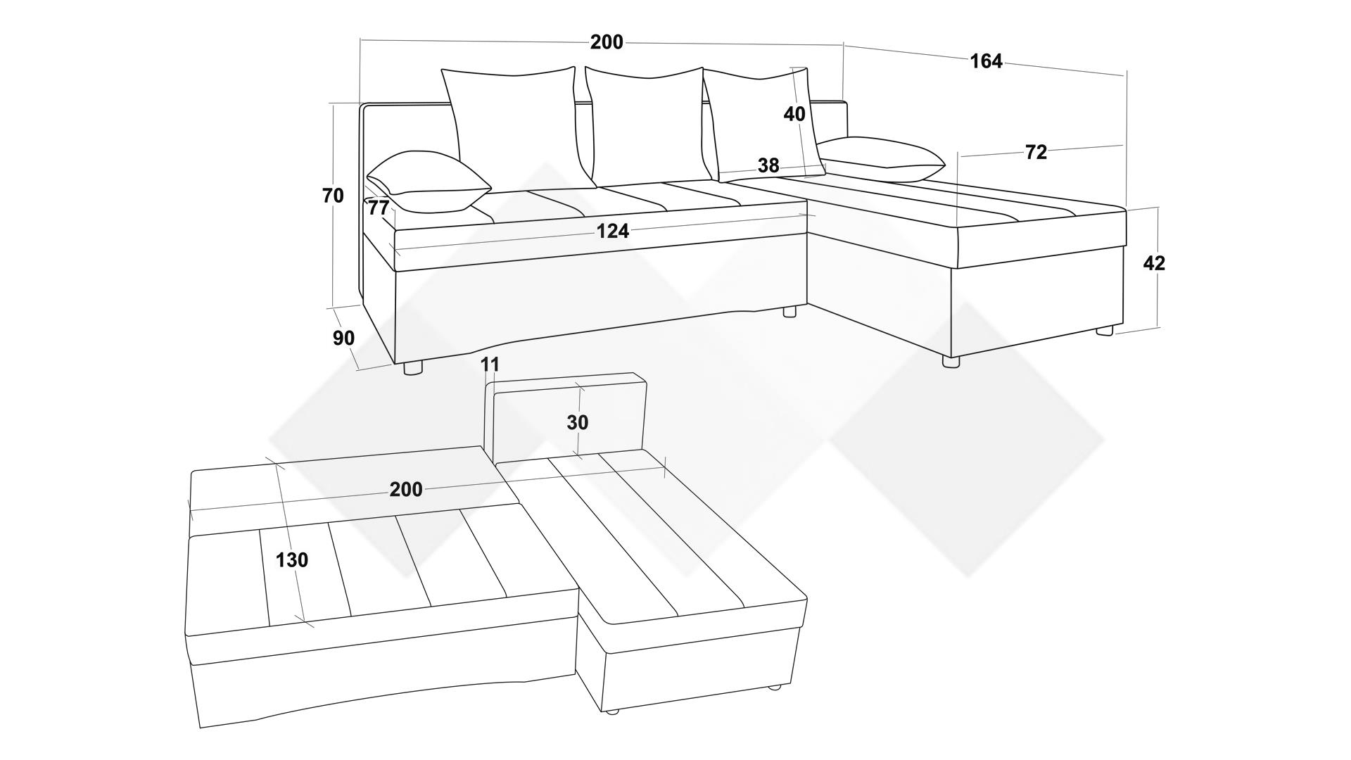 Д: 200 см Ш: 164 см В: 70 см
