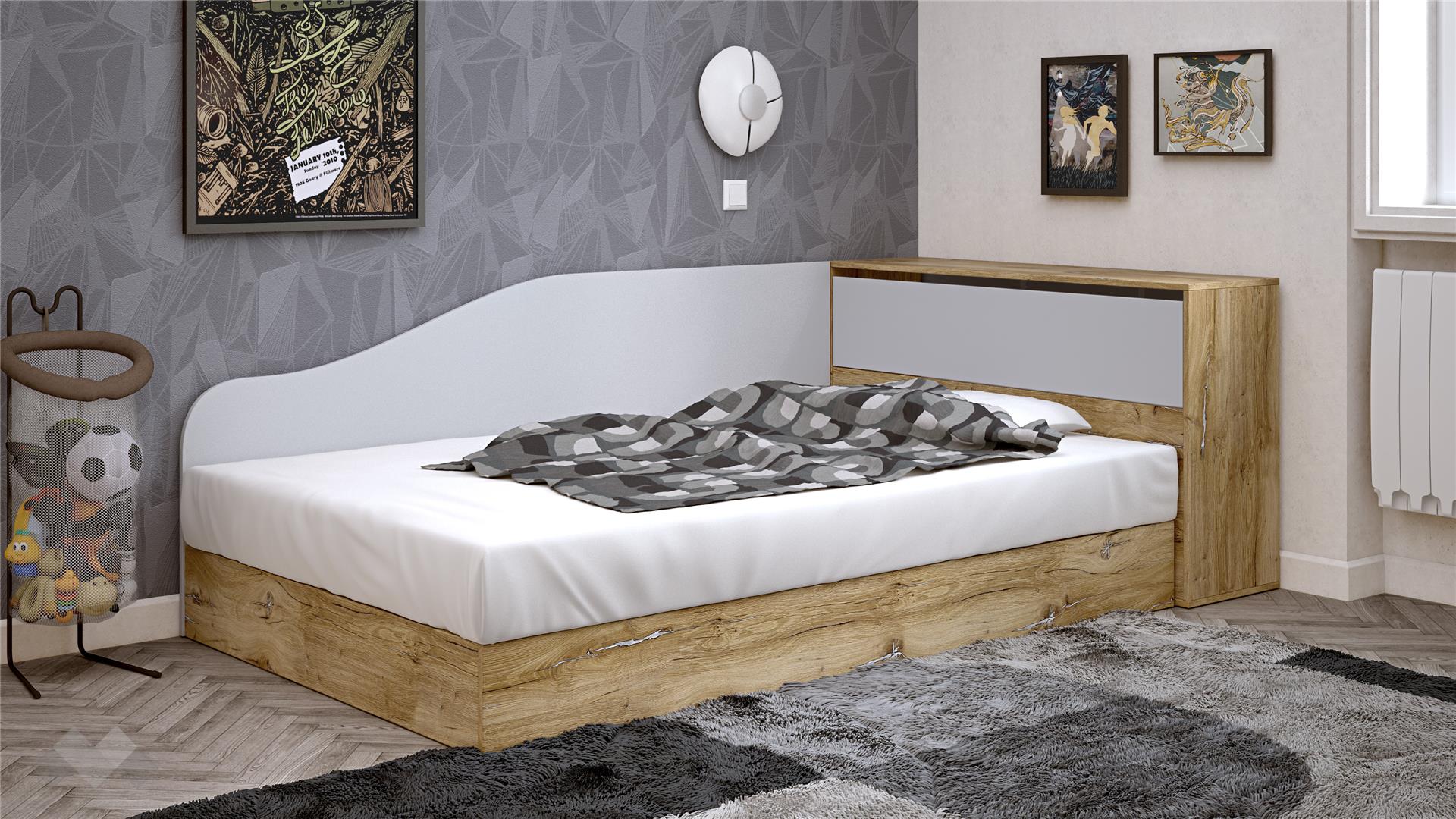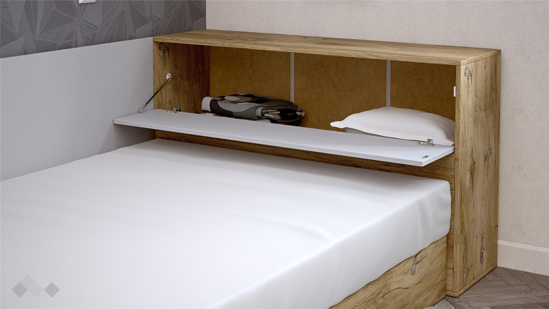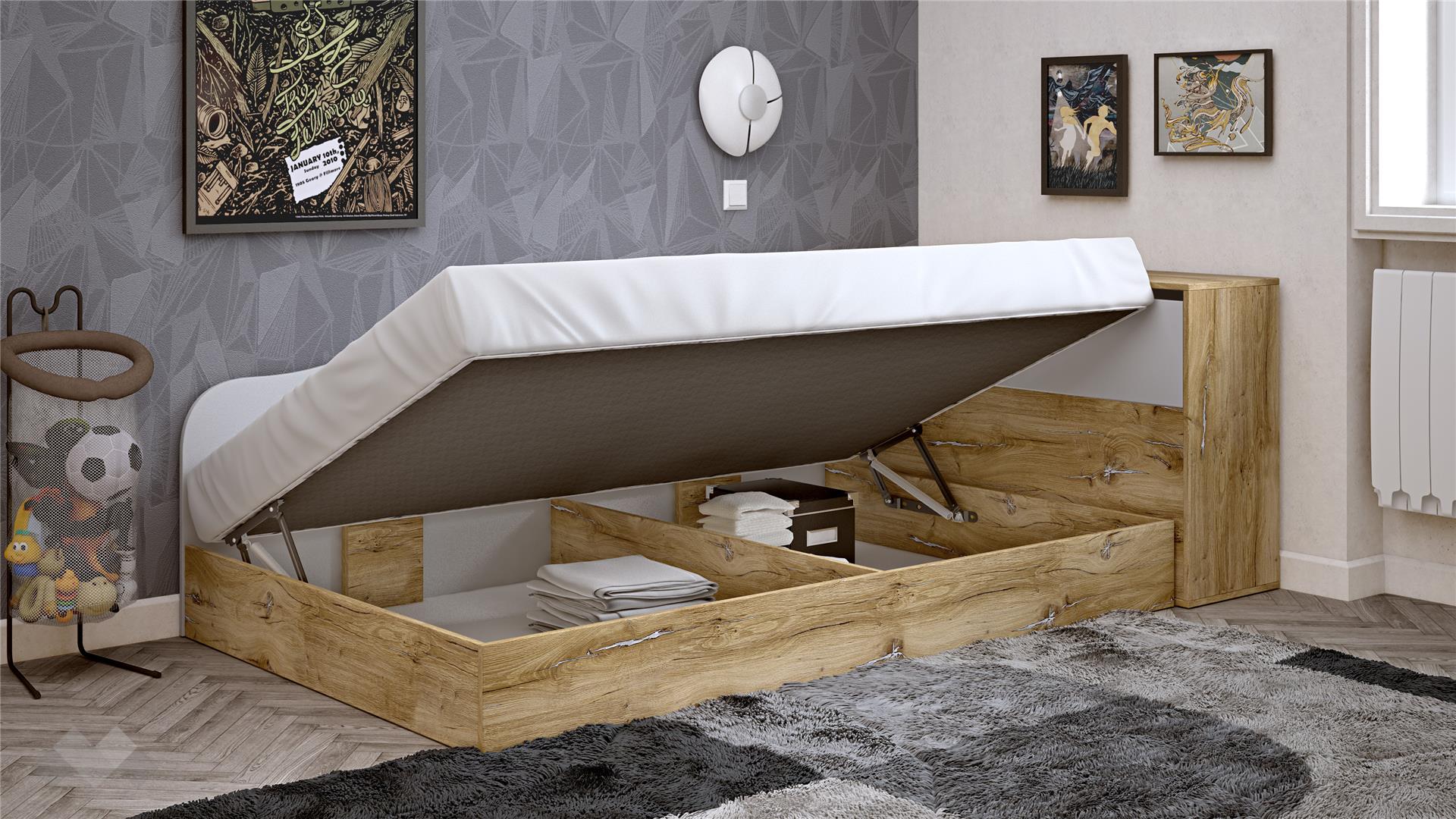 Леглото е проектирано с извита, мека линия на таблата, която едновременно служи като облегалка и предпазва стената. С механизът за повдигане на матрака и компактната ракла ти предоставяме изключително ценно допълнително място за съхранение на спално бельо, играчки, дрехи или други вещи, спомагайки за поддържане на реда в стаята.