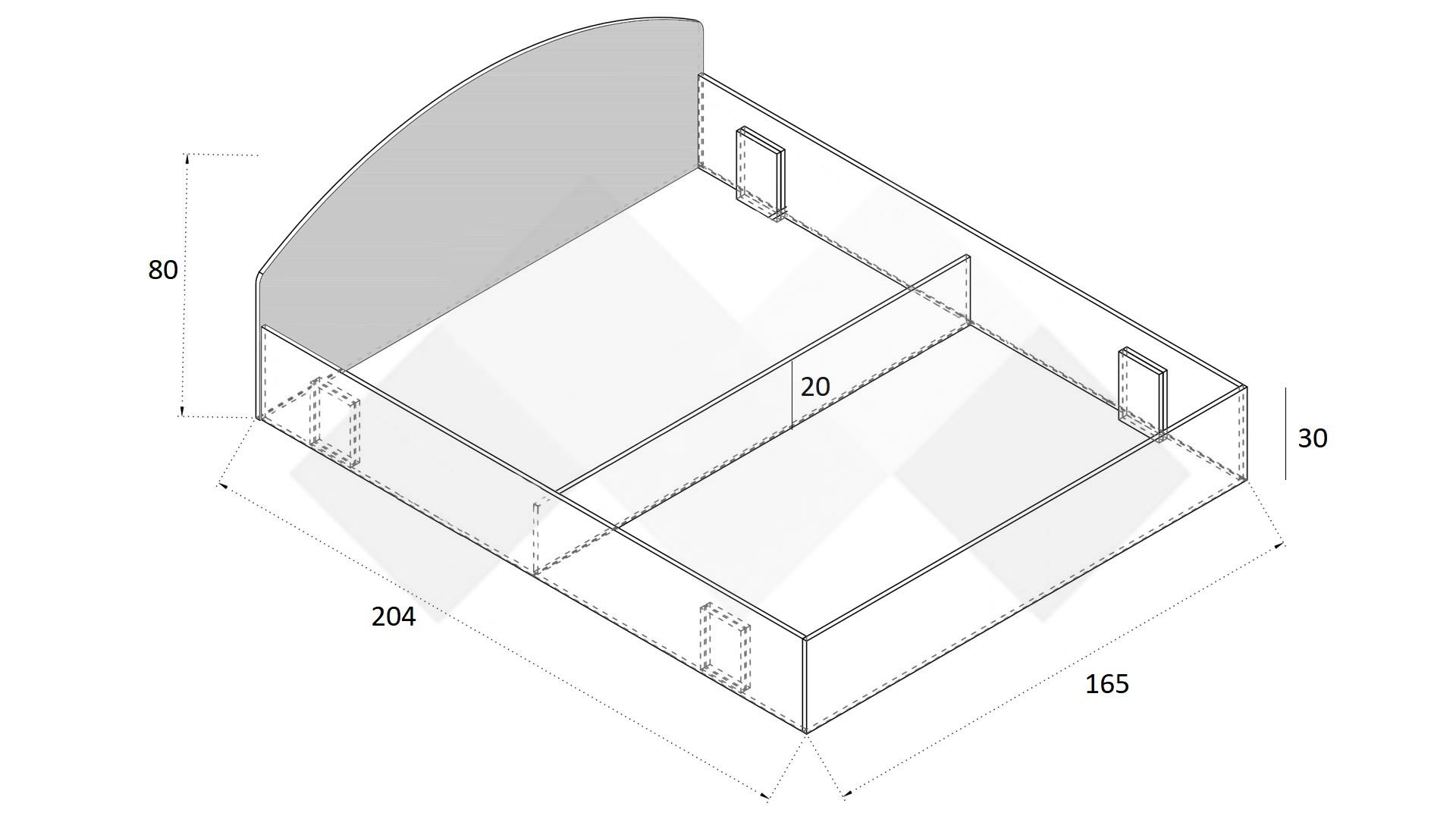 Легло: Д: 204 см Ш: 165 см В: 80 см
