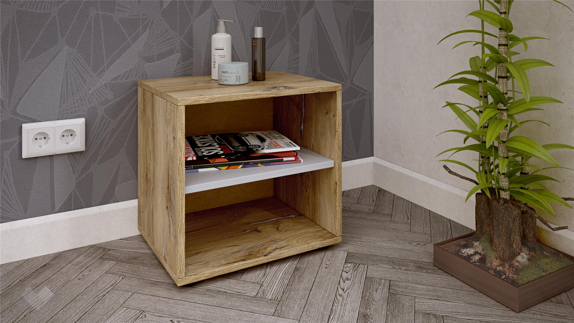 С оптималната си височина, нощният шакф предоставя допълнително удобство към всяко легло - нощна лампа, чаша вода или любима книга преди сън, са на една ръка разстояние от теб. Рафът ти дават още място за вещи, необходими за спокойния ти сън.