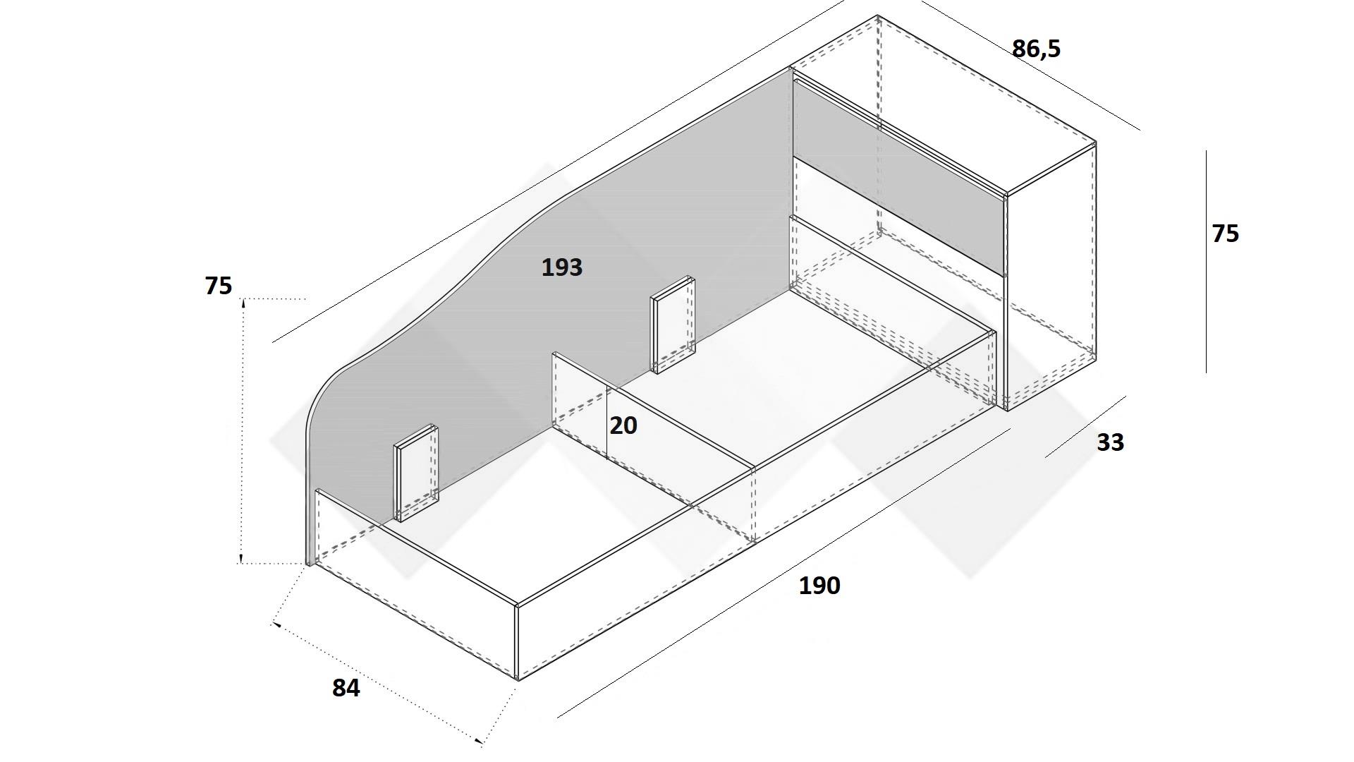 Леглото е проектирано с извита, мека линия на таблата, която едновременно служи като облегалка и предпазва стената. С механизът за повдигане на матрака и компактната ракла ти предоставяме изключително ценно допълнително място за съхранение на спално бельо, играчки, дрехи или други вещи, спомагайки за поддържане на реда в стаята.