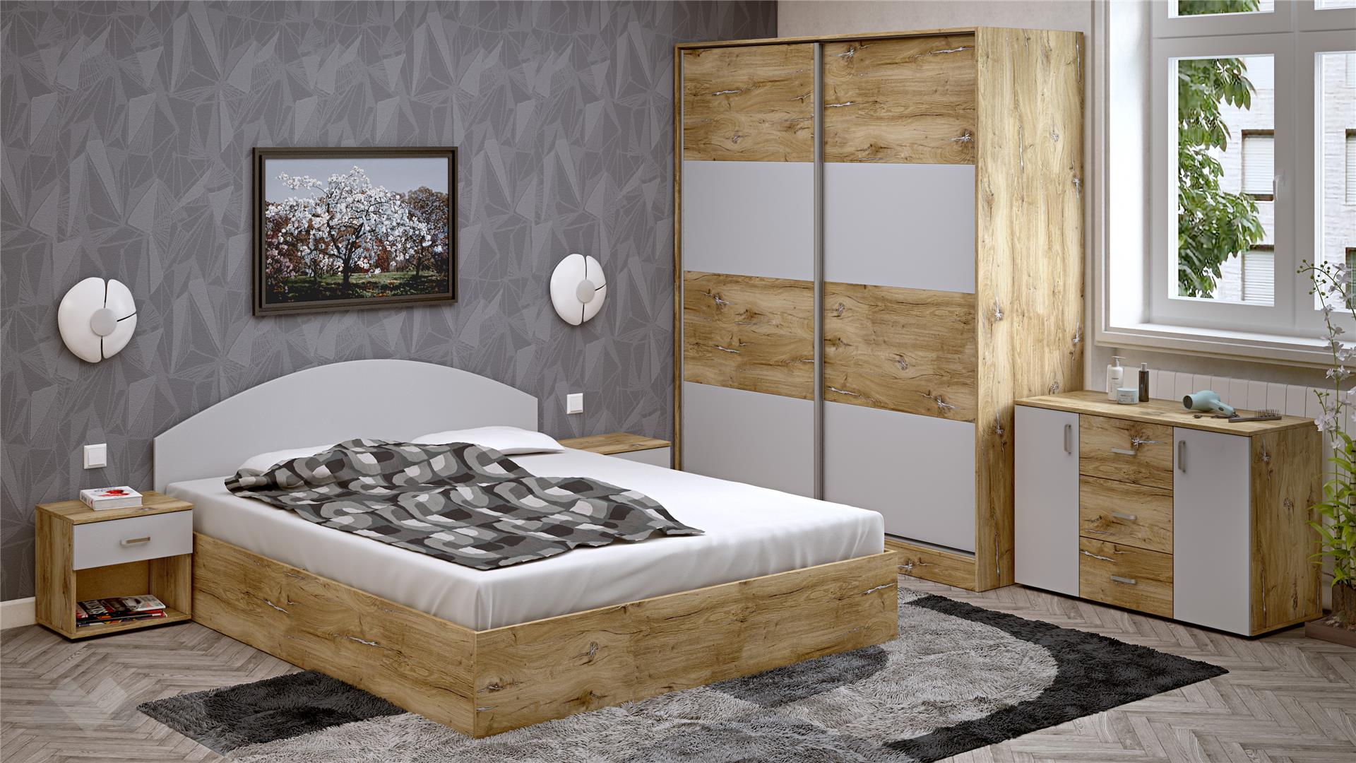 Спален комплектСелтик С1келтски дъб със светло сиво