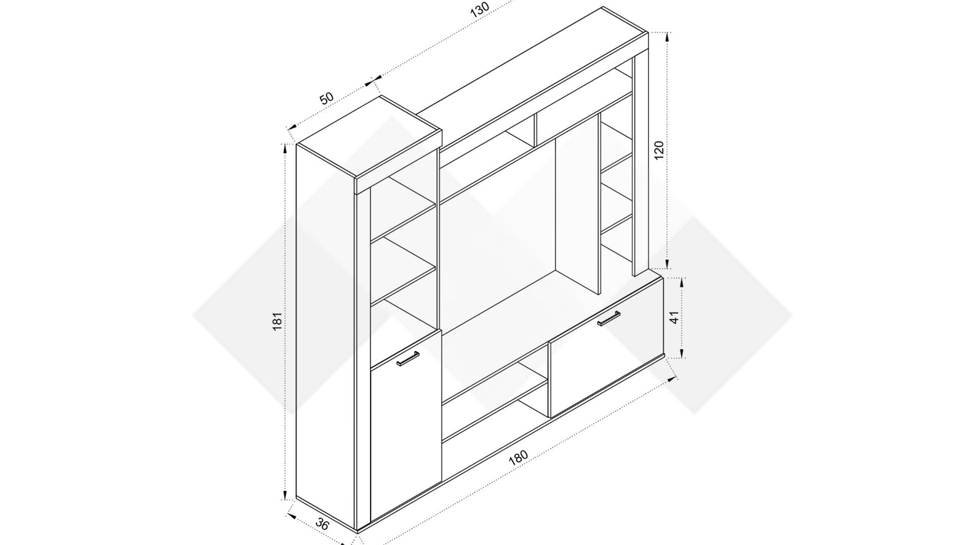 Секция Шоу ти предлага всичко, от което се нуждаеш – ТВ шкаф с отворени рафтове и затворен шкаф за цялата ти съпътстваща техника. Висок шкаф, който предоставя отворени рафтове, на които можеш да подредиш книги или красиви предмети, и шкафче с врата, в което можеш да скриеш вещите си. На етажерката можеш да разположиш любими снимки, сувенири от пътувания или модерна декорация – изборът е твой!