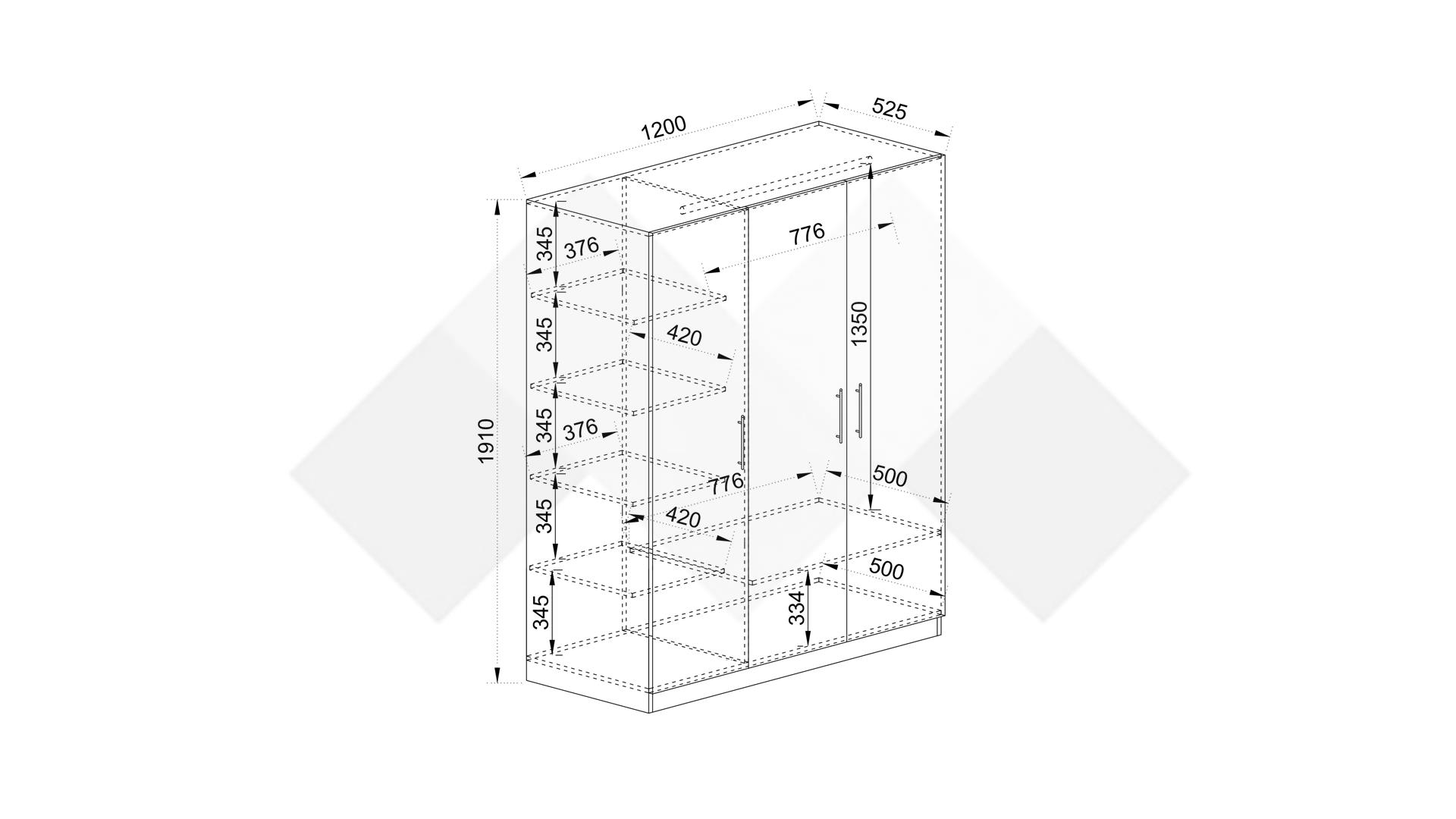 ✓ трикрилен ✓ 5 рафта ✓ лост за закачалки ✓ механизъм за плавно затваряне ✓ модерен декор ✓ практично разпределение ✓ качествена изработка ✓ 16 мм ПДЧ