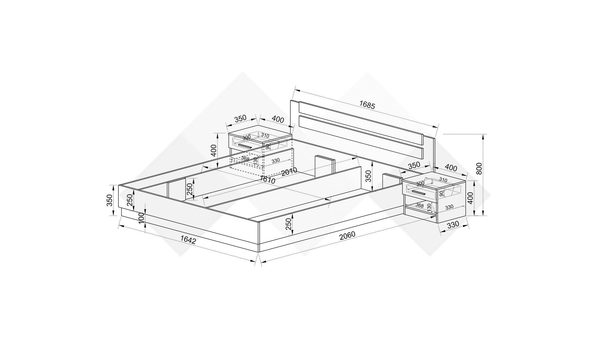 Спалня: Д: 168.5 см Ш: 206 см В: 80 см