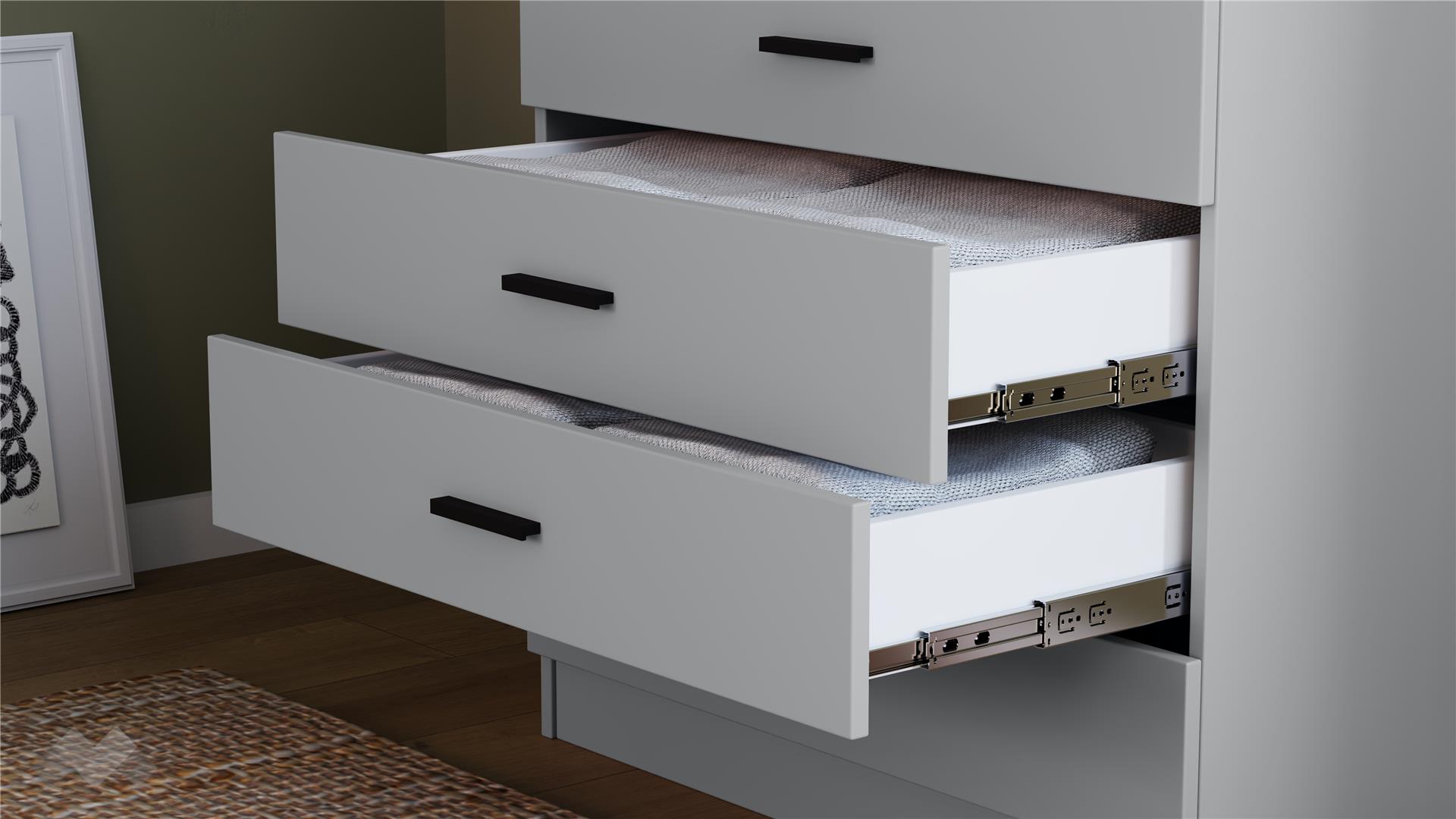Чекмеджетата са снабдени със сачмени водачи с пълно изтегляне и плавно прибиране, характеризиращи се със стабилност, устойчивост и издръжливост при по-голямо натоварване.