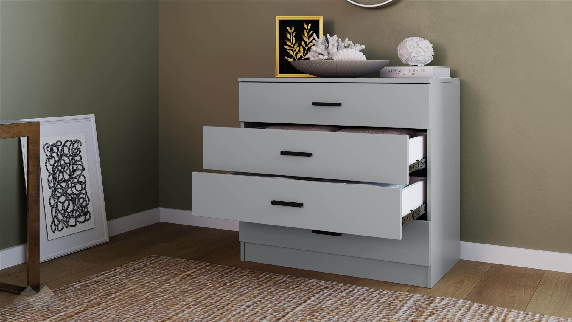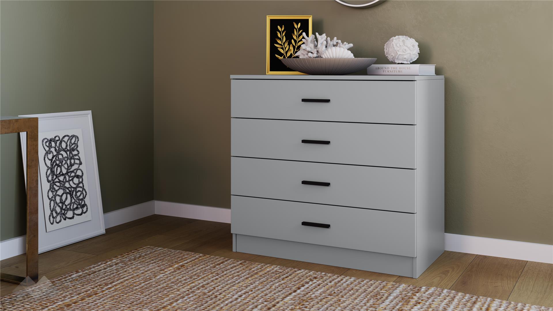 Скринът предлага четири просторни чекмеджета, подходящи за организиране на бельо, аксесоари и други вещи. Горният плот е идеален за подреждане на любими снимки, книги или други вещи, които да са ти винаги под ръка или да придадат допълнителен акцент на интериора.