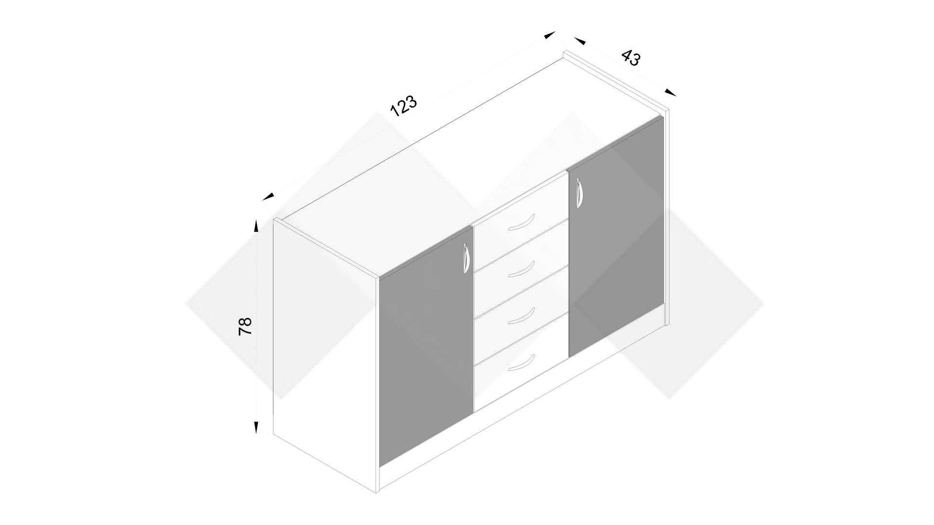 Д: 123 см Ш: 43 см В: 78 см