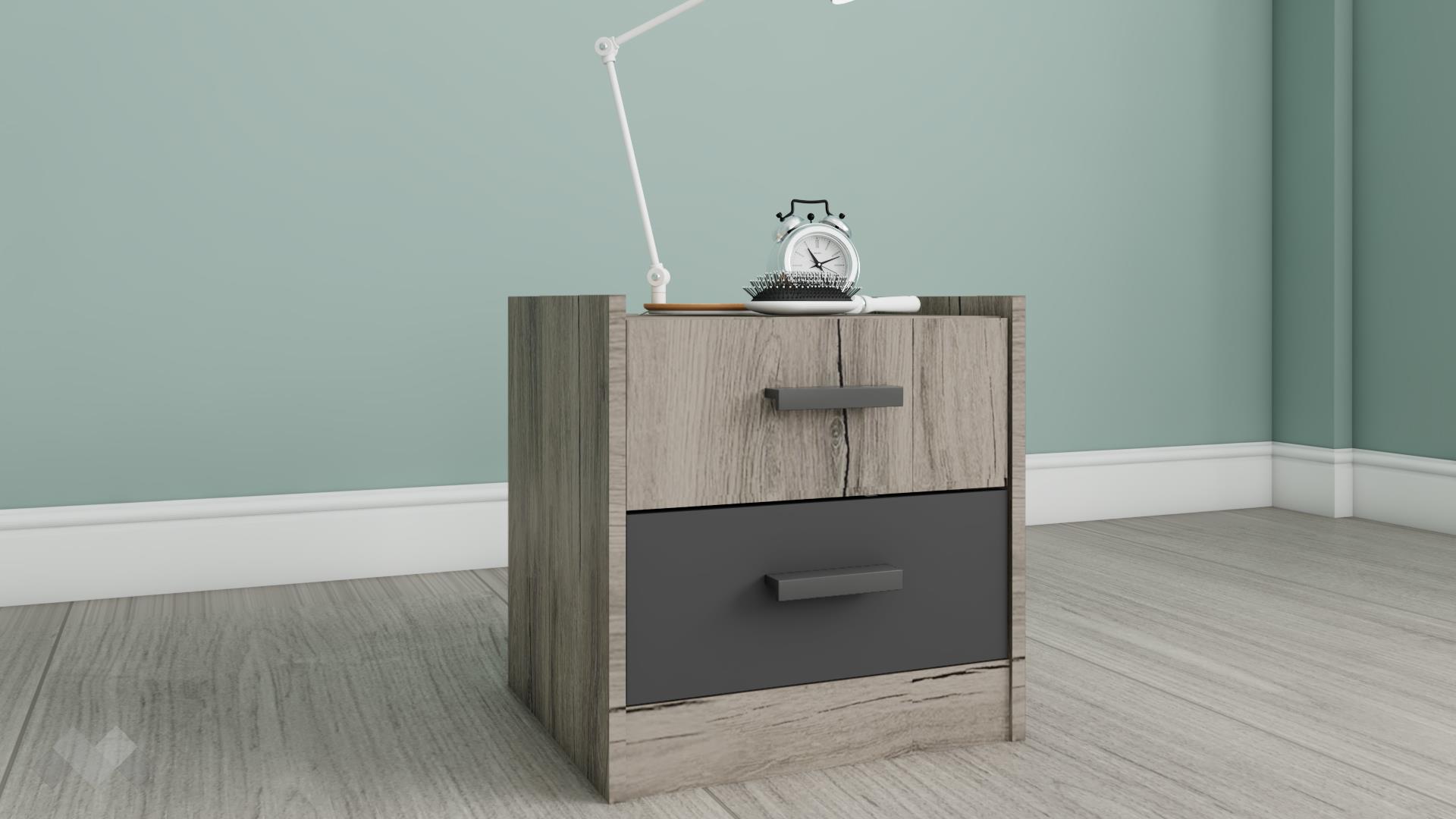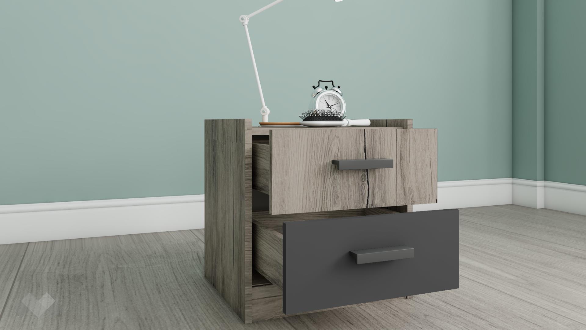 Съчетава се добре, както с цветове в сивата, така и с цветове в кафявата гама. Малък, но практичен, с оптимална височина, пасва буквално на всяко легло. Благодарение на двете чекмеджета разполагаш с достатъчно място за организация на всякакви вещи и дреболии. Плотът е разположен по-ниско, за да можеш да използваш и него като рафт.