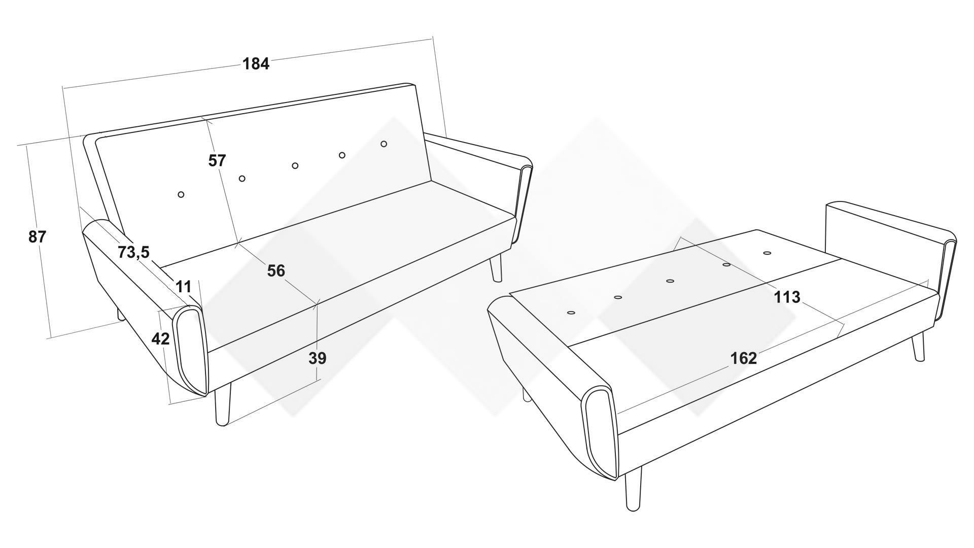 Моделът е подходящ както за дневна, така и за работен кът, гостна или по-малко жилище. Благодарение на клик-клак механизма, Свен лесно се превръща в удобно легло с размер 162/113 – идеално както за кратка почивка, така и за спане през нощта.