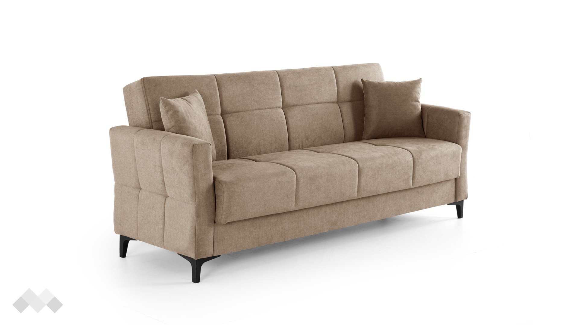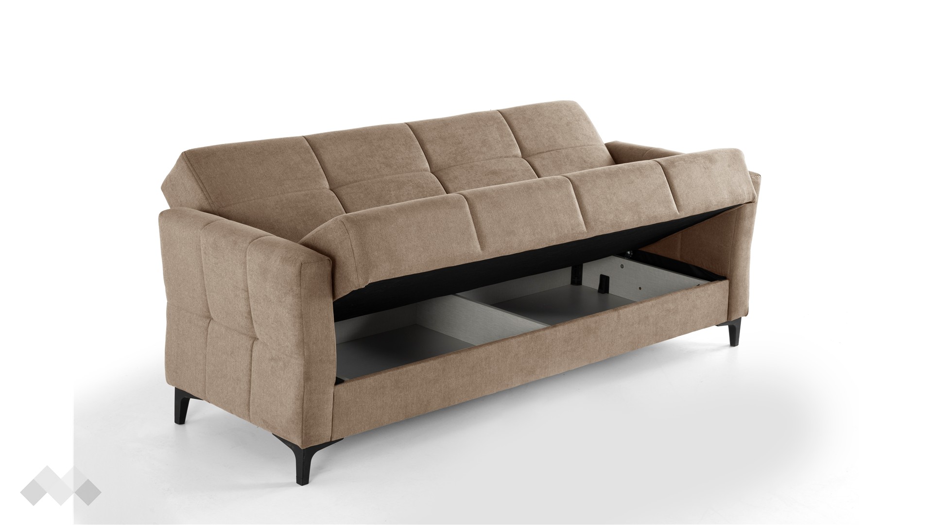 С помощта на клик-клак механизма диванът се разгъва лесно и бързо, превръщайки се в удобно легло с площ за сън 182/107 см. Това го прави подходящ както за ежедневна почивка, така и за нощуване на гости. Под седалката е разположена просторна ракла, която предлага удобно място за съхранение на завивки, възглавници и други вещи, като помага да поддържаш ред в помещението. Дамаската е мека, приятна на допир и изработена от устойчив текстил.