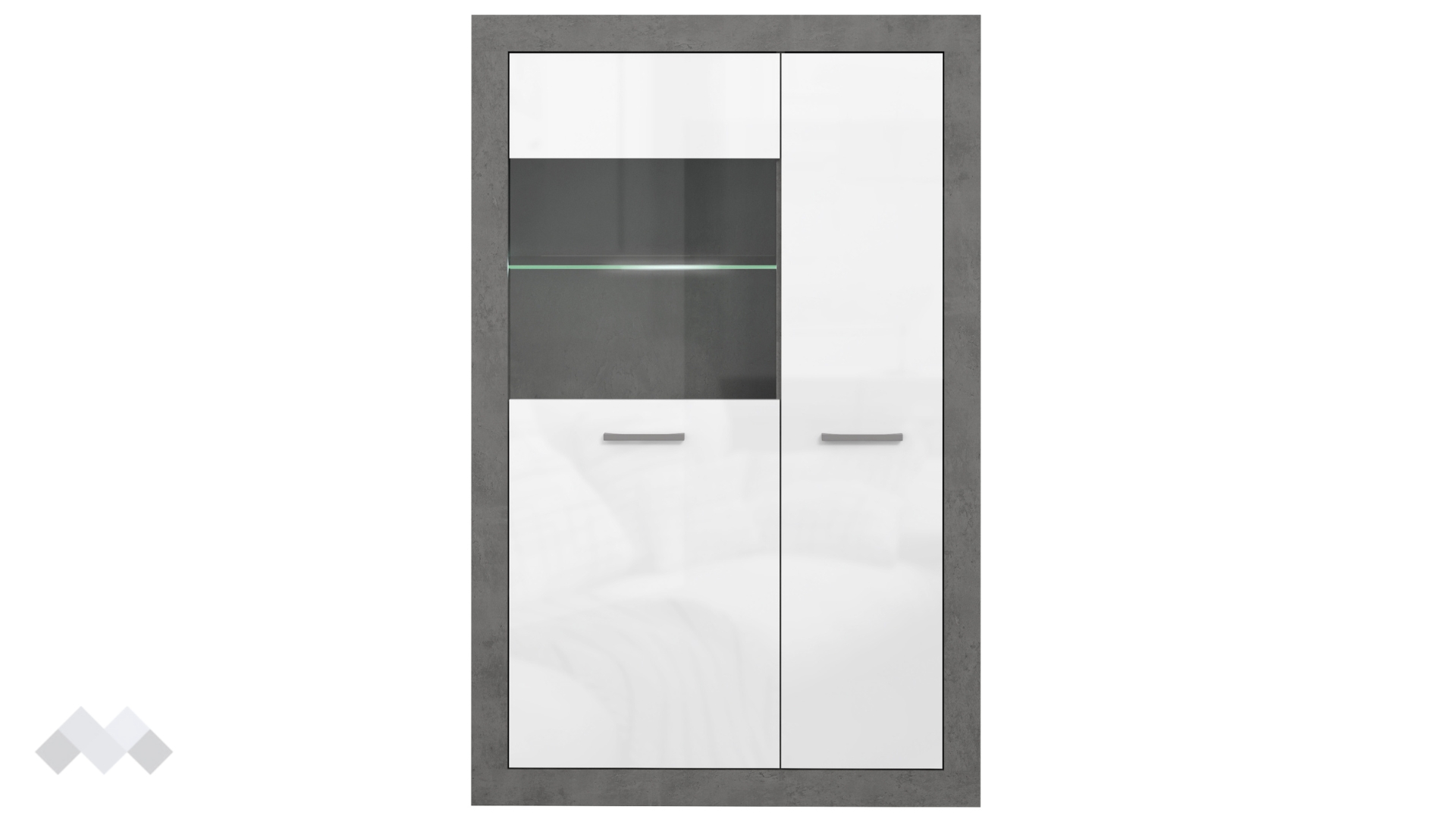 Висок шкаф с две вратиТребиясиво с бял гланц с витрина