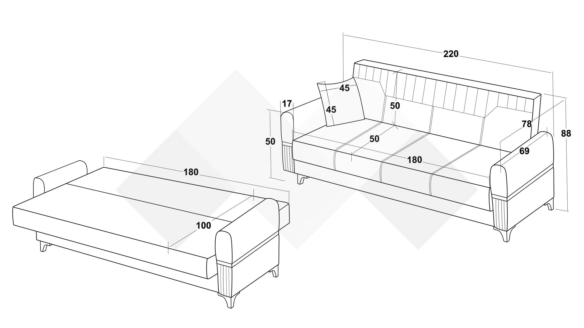 Освен елеганстен, диван Верино е и функционален – с минимално усилие се превръща в комфортно и просторно легло с размери 100/180 см, благодарение на клик-клак механизъм. А отдолу се крие просторна ракла, в която може да съхраниш завивки, още възглавници или вещи, които да са на една ръка разстояние.
