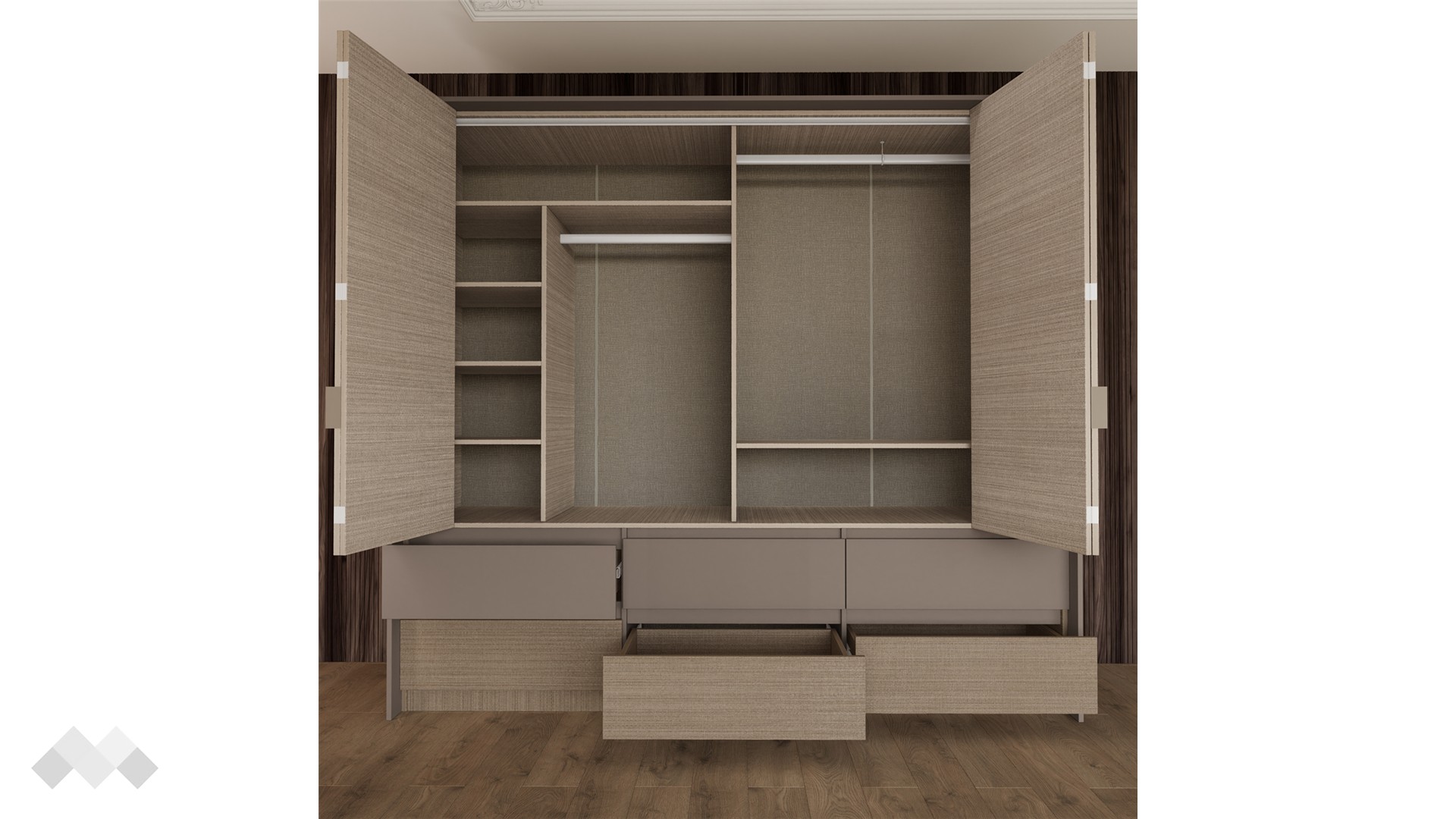 Гардеробът е неотменима част от всяка спалня, предоставяйки не само място за съхранение, но и допълнителен комфорт и удобство. Един добре проектиран гардероб може значително да подобри функционалността на стаята, затова ти представяме четирикрилен гардероб Захир.